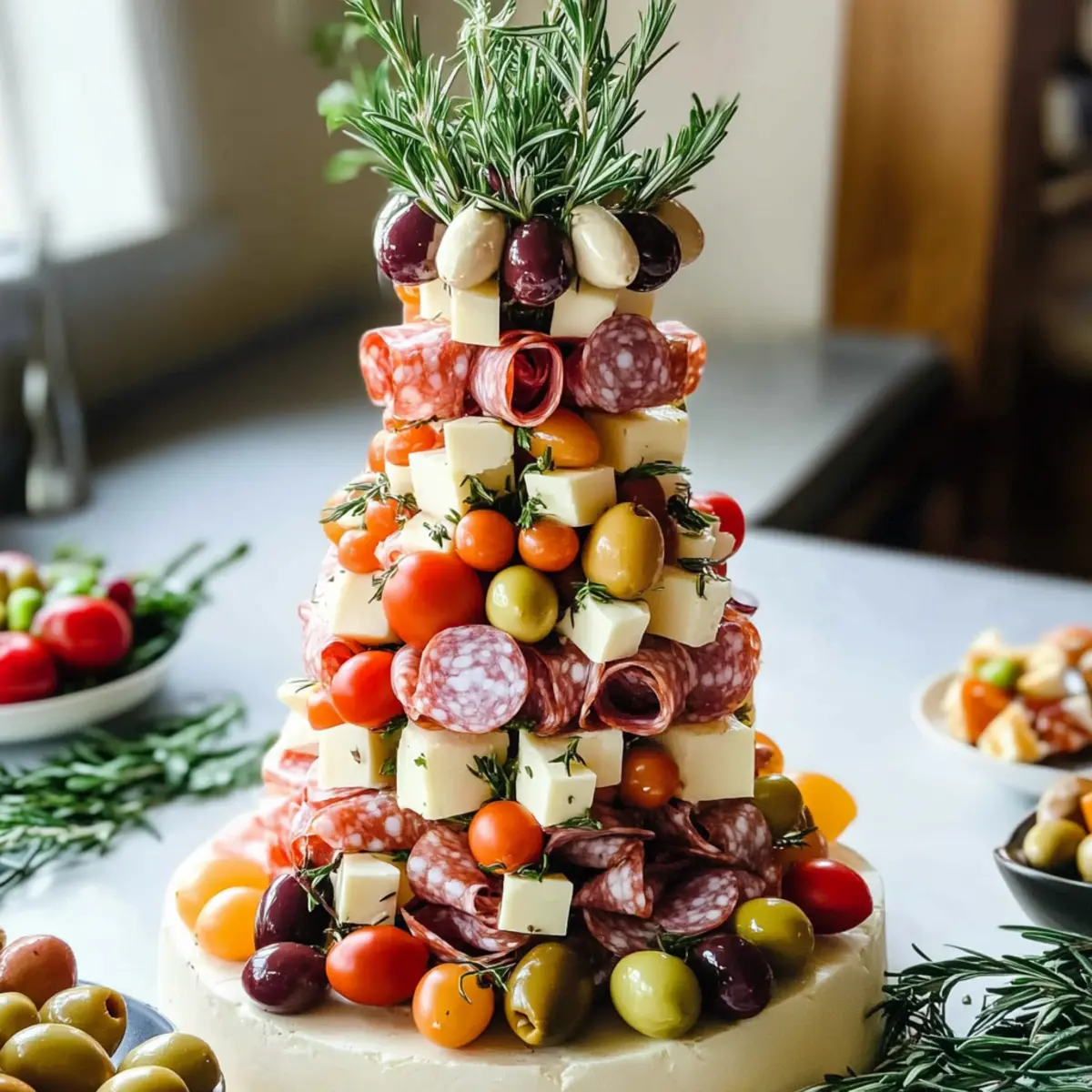 Festlich und ansprechend: Der Antipasti Turm ist ein echter Blickfang auf jedem Tisch und bringt Farbe und Leben in deine Feiern.