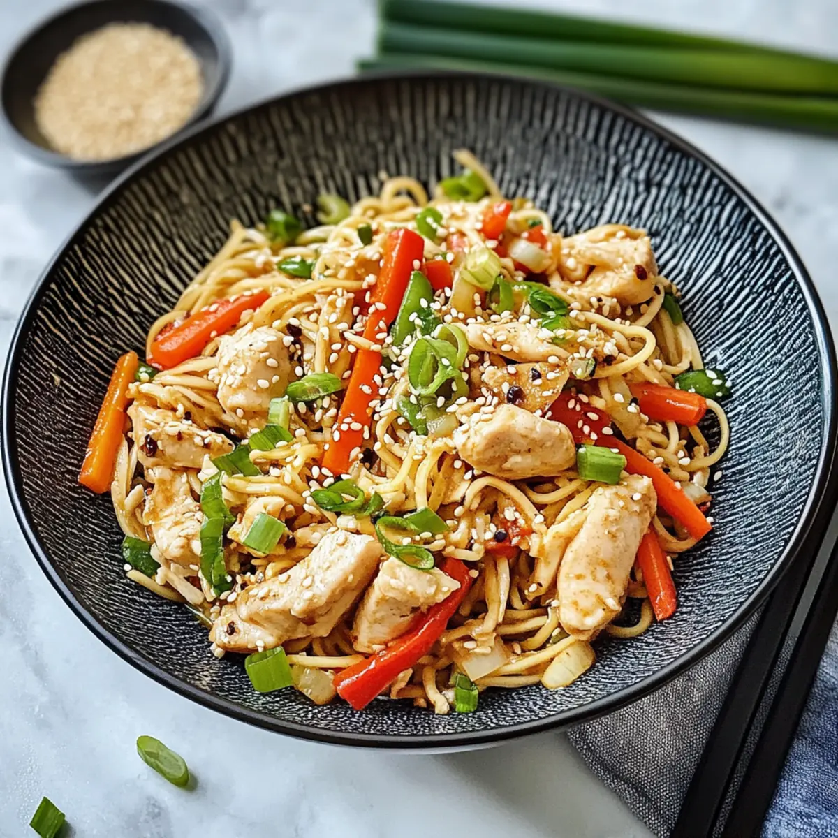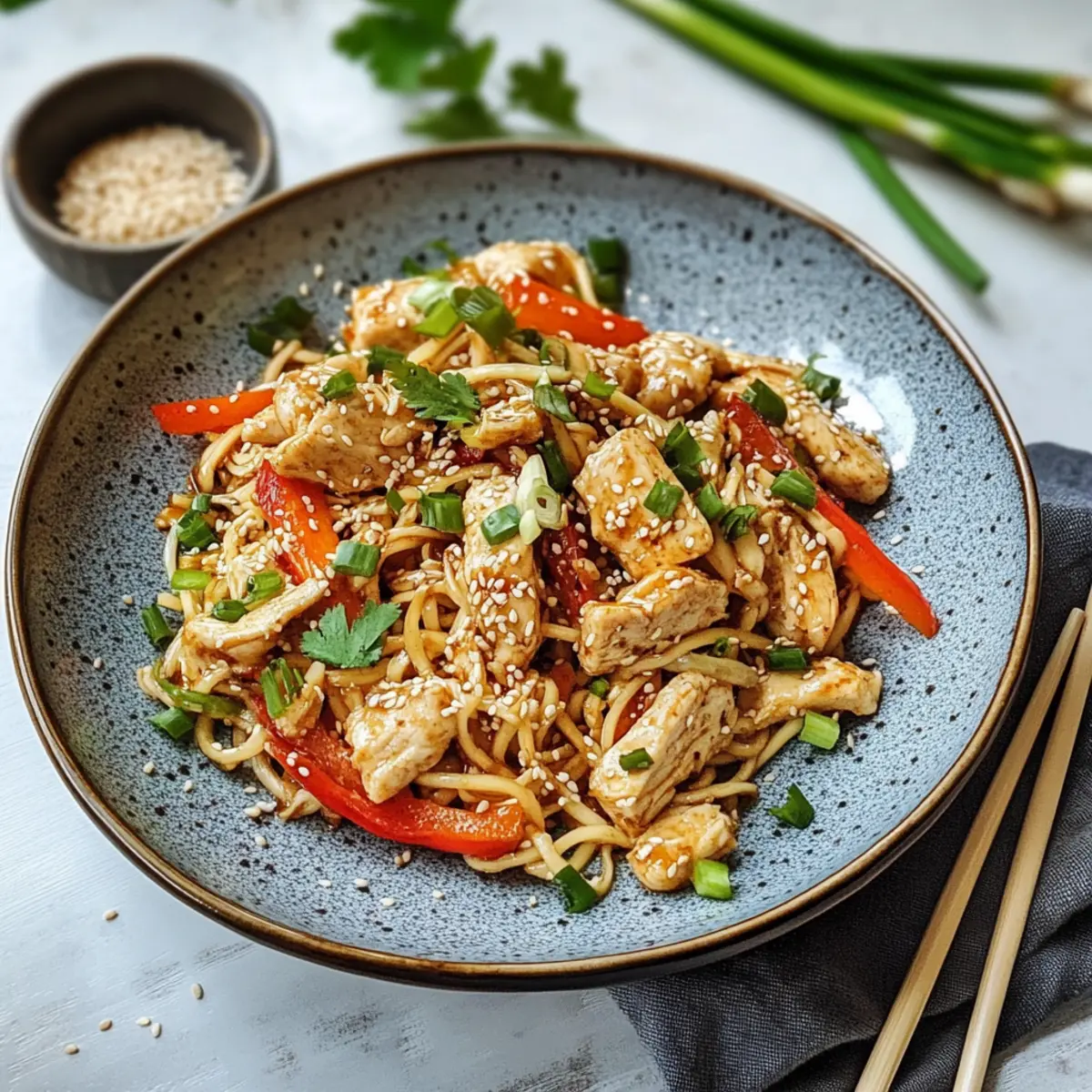 - Vegetarisch: Lass das Hähnchen weg und verdopple die Menge an Gemüse wie Zucchini oder Brokkoli für eine herzhafte vegetarische Version. So gibt es einen frischen Biss in jeder Gabel.