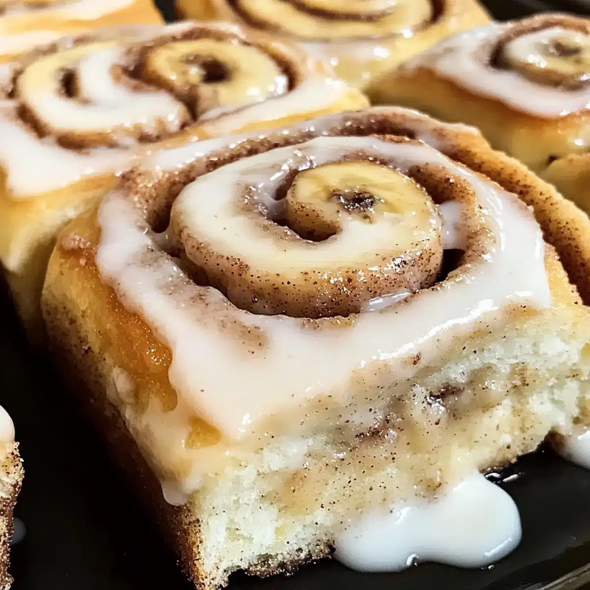 Bananenbrot Zimtschnecken mit Frischkäseglasur