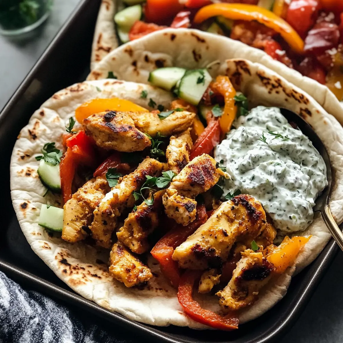 Blechpfannen-Hähnchen-Pitas mit Tzatziki Genuss