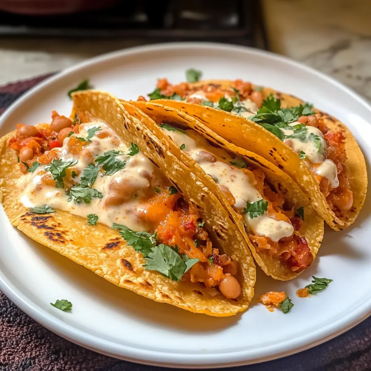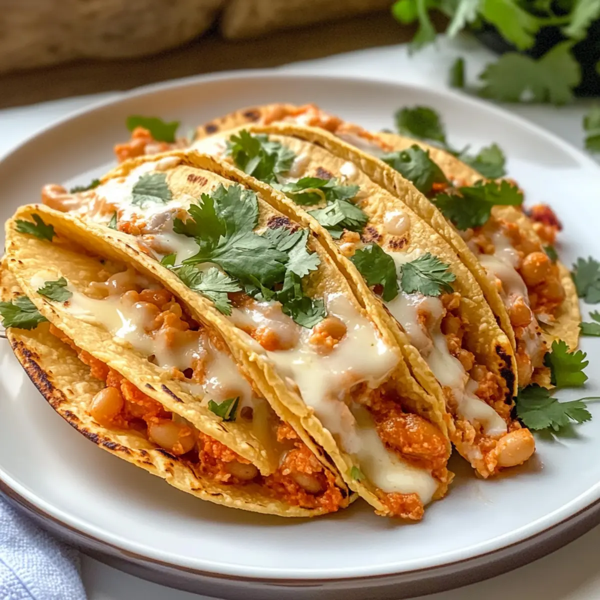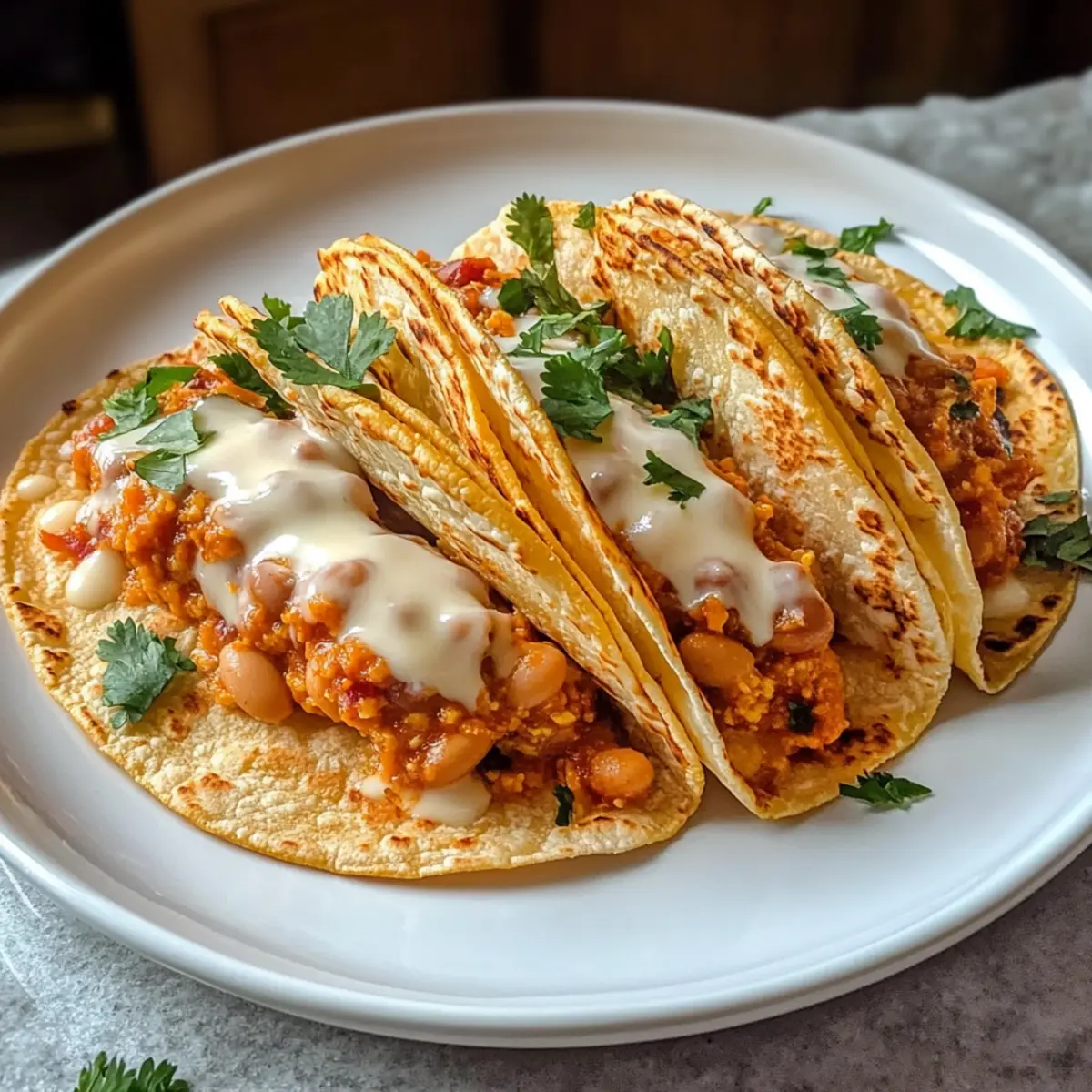 Nimm die Tacos aus der Pfanne und lege sie auf einen Teller. Garniere sie mit frischem Koriander und serviere sie mit zusätzlicher saurer Sahne auf der Seite. Die knusprigen Buffalo weiße Bohnen Tacos sind jetzt bereit, genossen zu werden – ideal für ein schnelles und schmackhaftes Abendessen mit der Familie!
