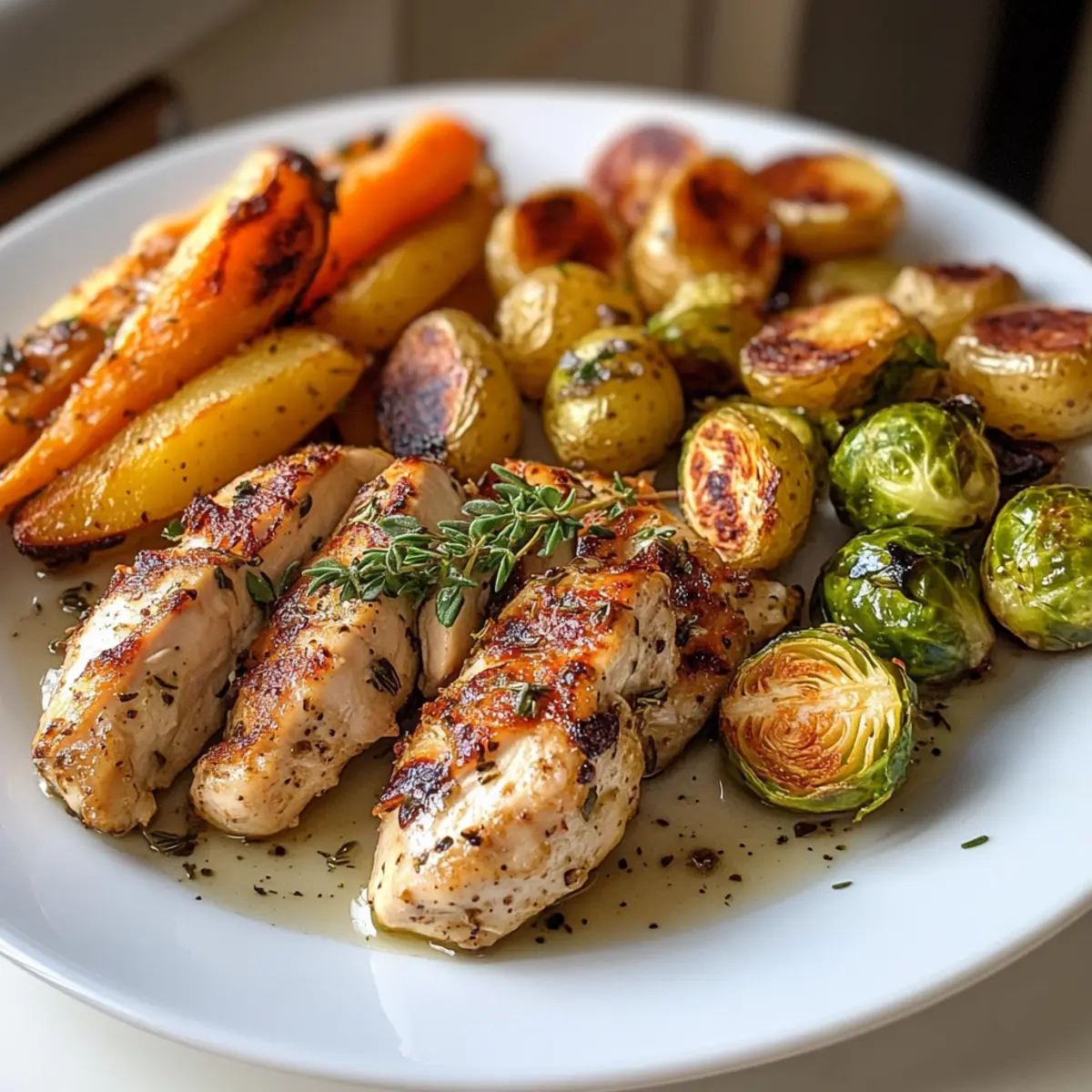 Sinnlicher Genuss: Die Kombination aus zartem Hühnchen und lebhaften, gerösteten Gemüsesorten sorgt für eine festliche Geschmacksexplosion.