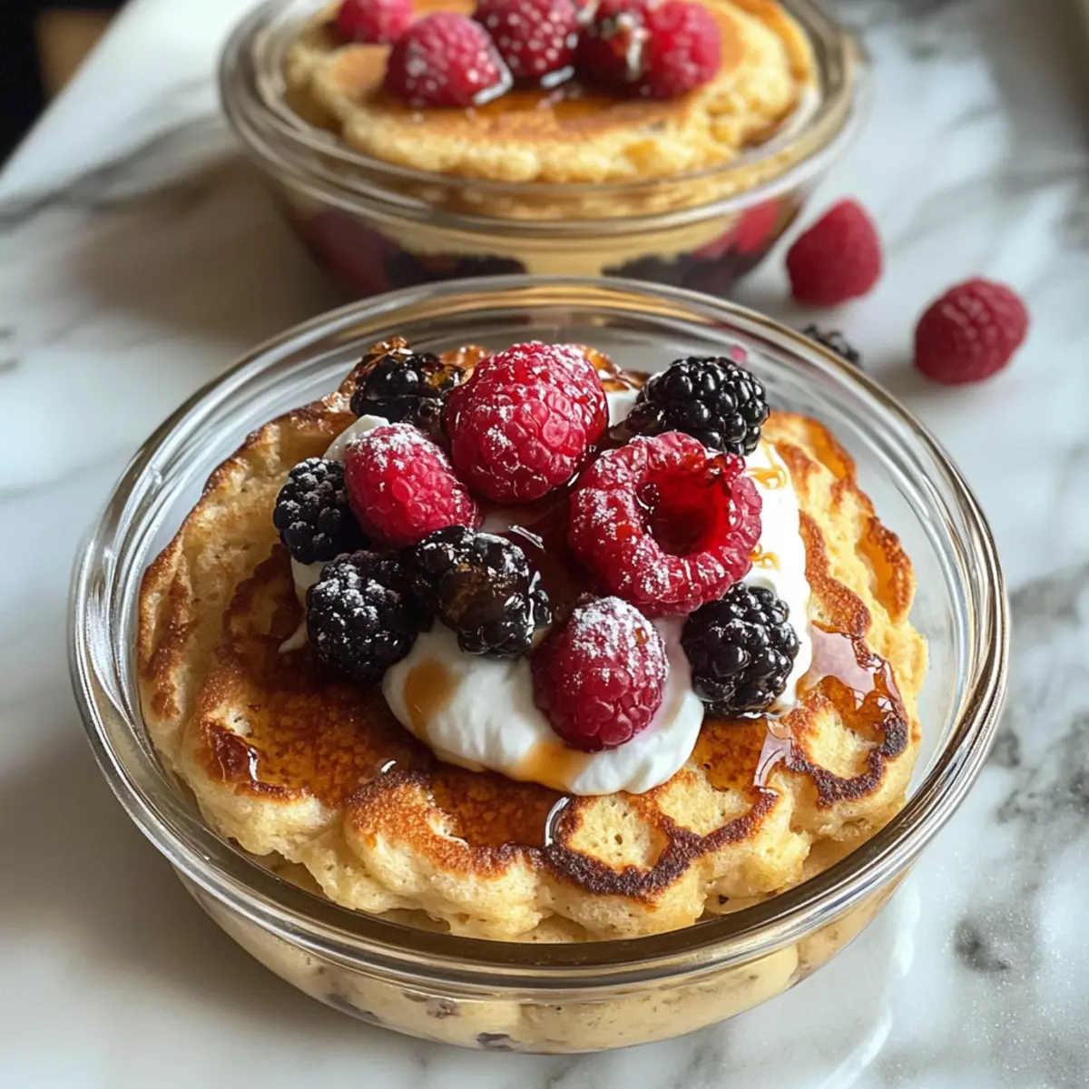 Gebackene Protein-Pfannkuchen-Schüsseln für Frühstücksliebhaber