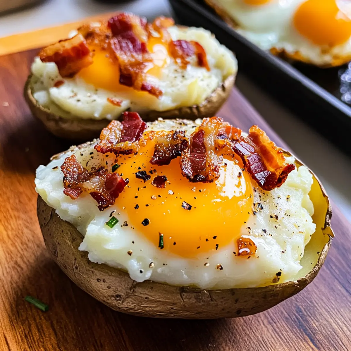 Zweimal gebackene gefüllte Frühstückskartoffeln genießen