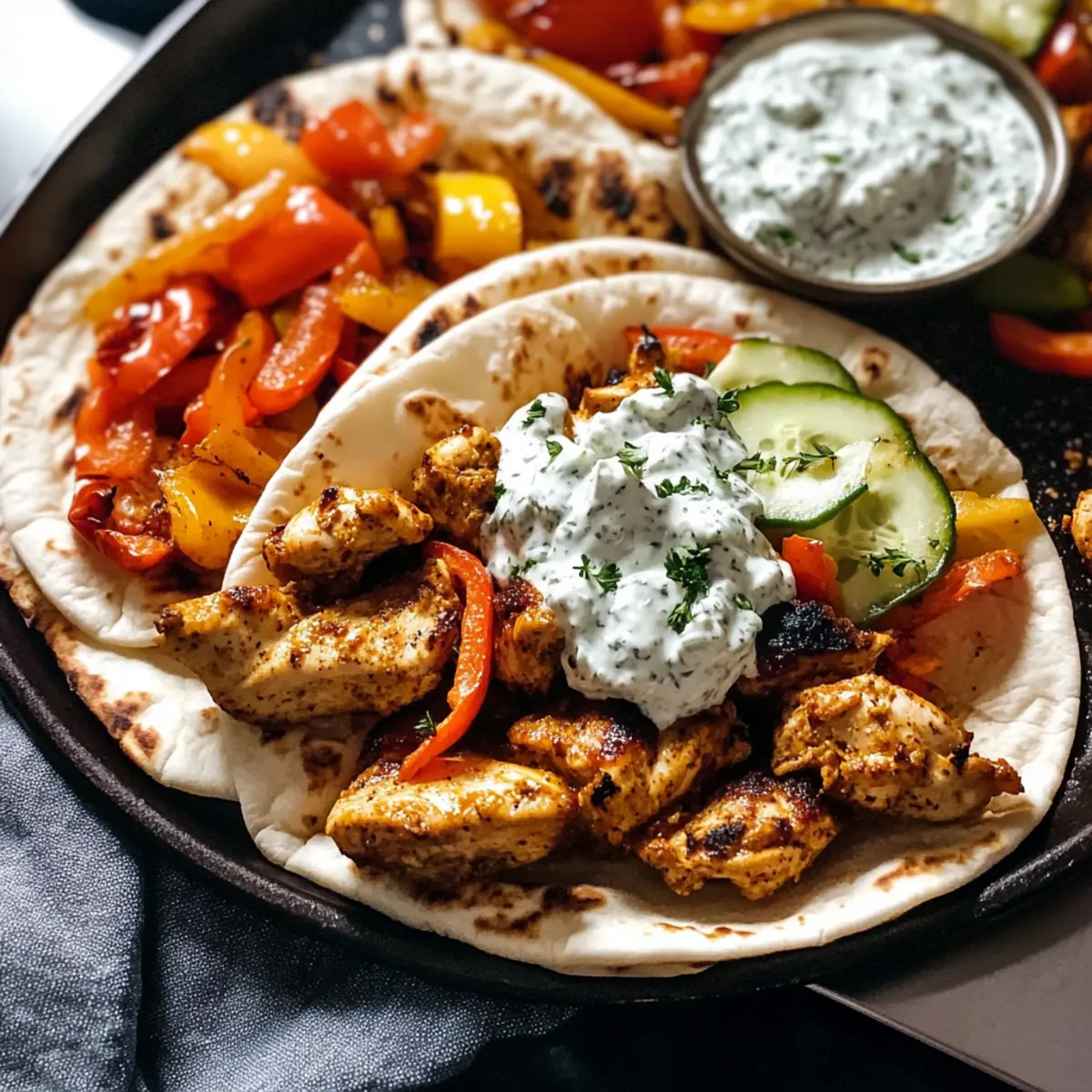 Blechpfannen-Hähnchen-Pitas mit Tzatziki Genuss