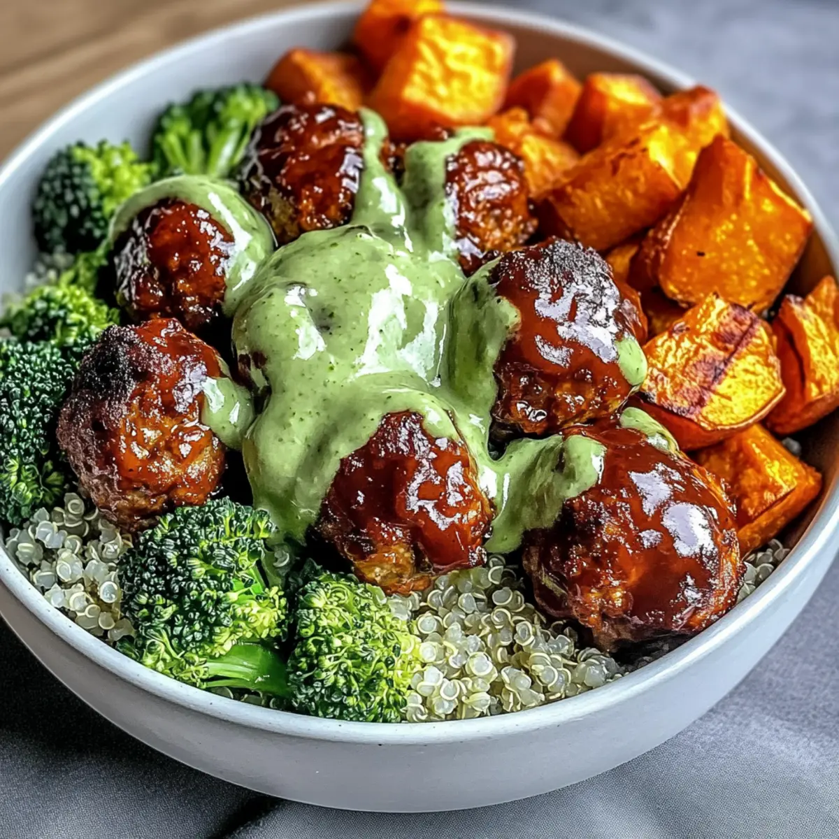 Grillfleischbällchen-Schalen mit Avocado-Soße genießen