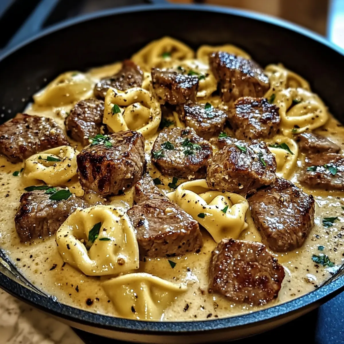 Knoblauchsteak-Tortellini in Sahnesoßenglück schnell zubereitet