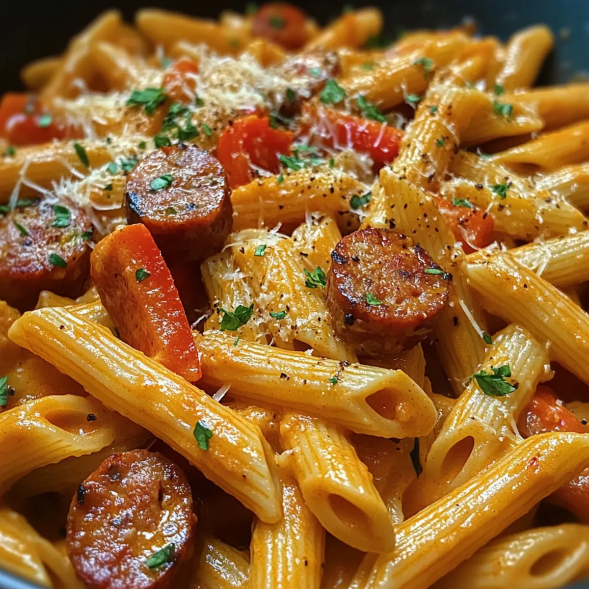 Cremige würzige Cajun-Wurst-Pasta in einem Topf