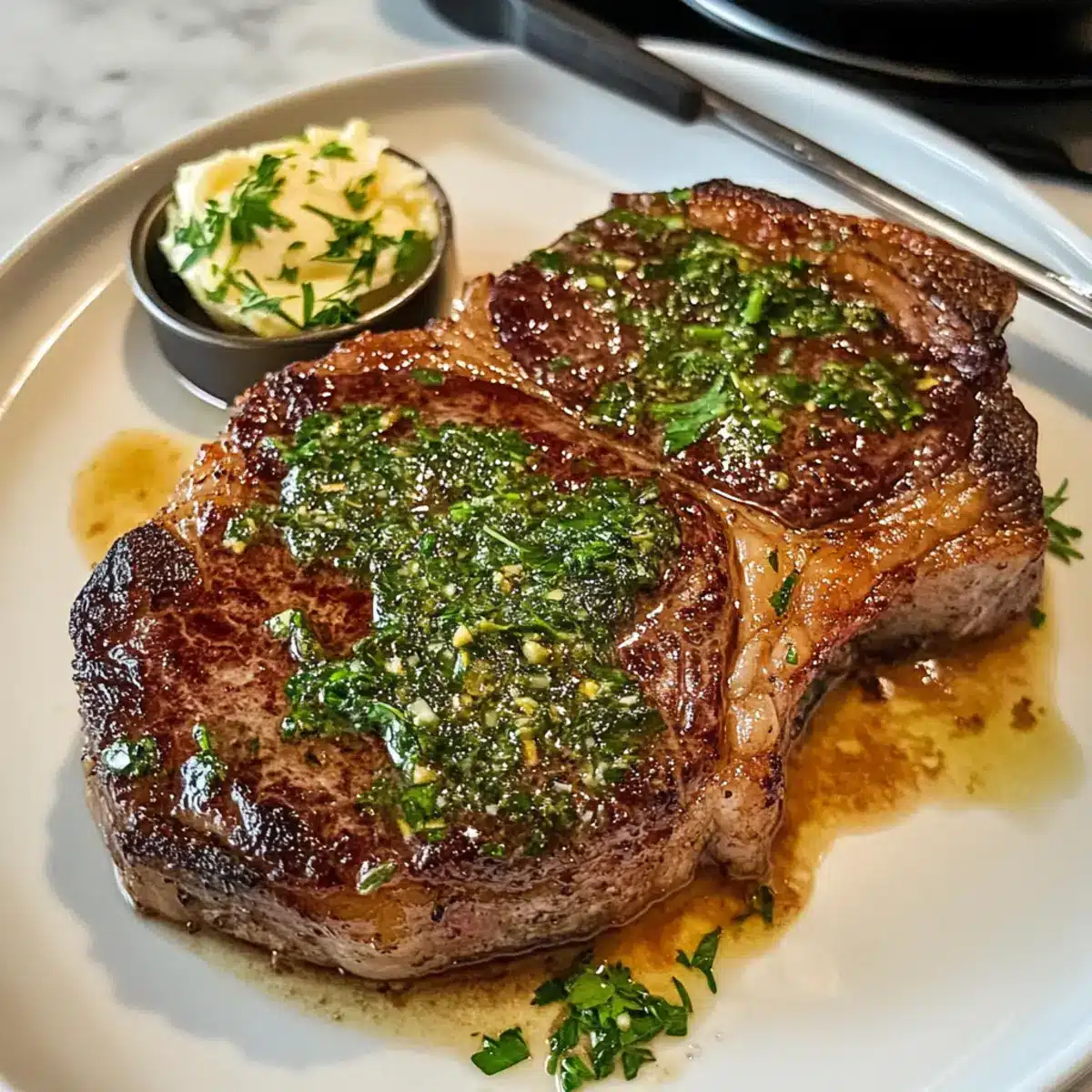 Perfekt angebratene Steak mit Knoblauchbutter genießen