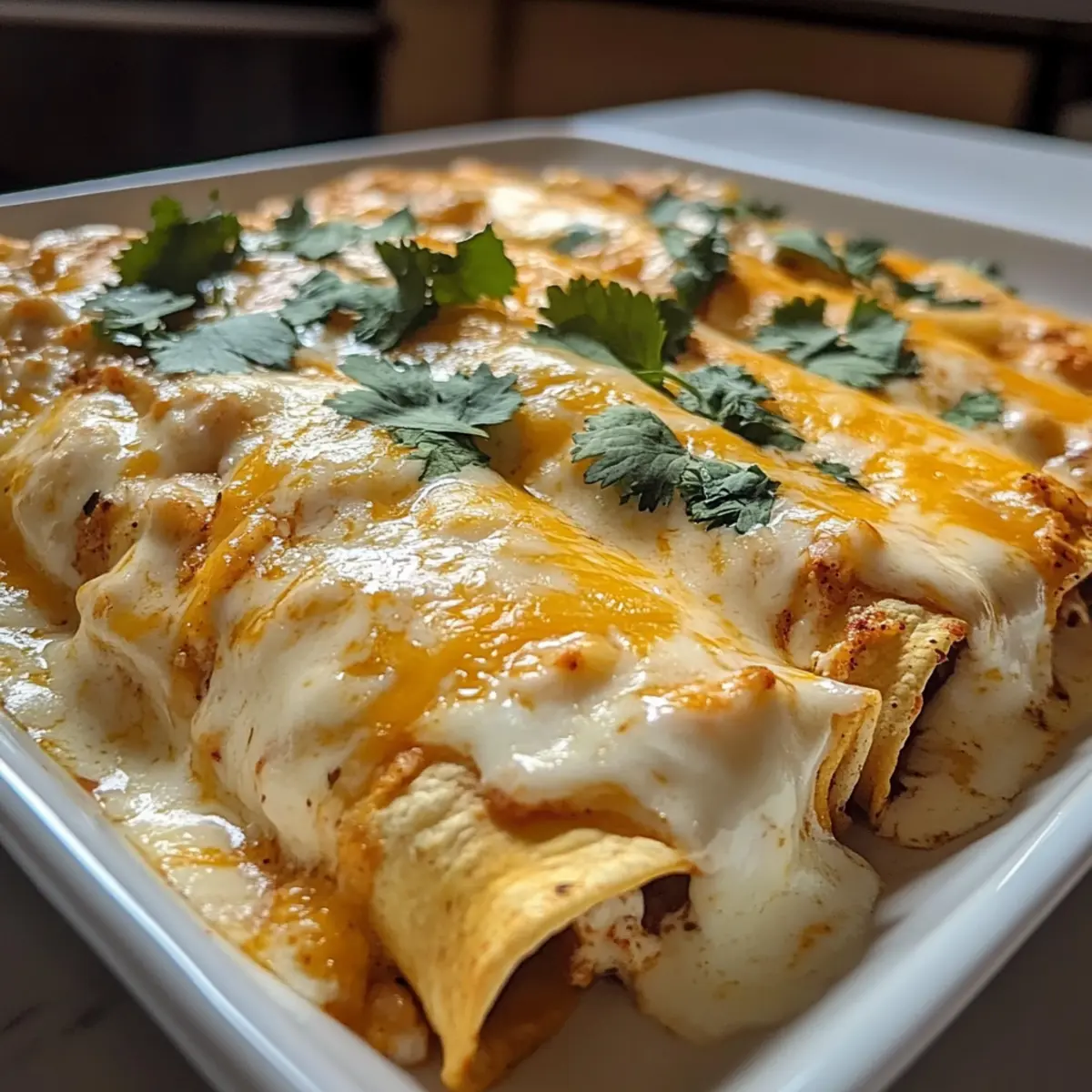 38g Protein Hähnchen-Enchiladas mit weißer Sauce