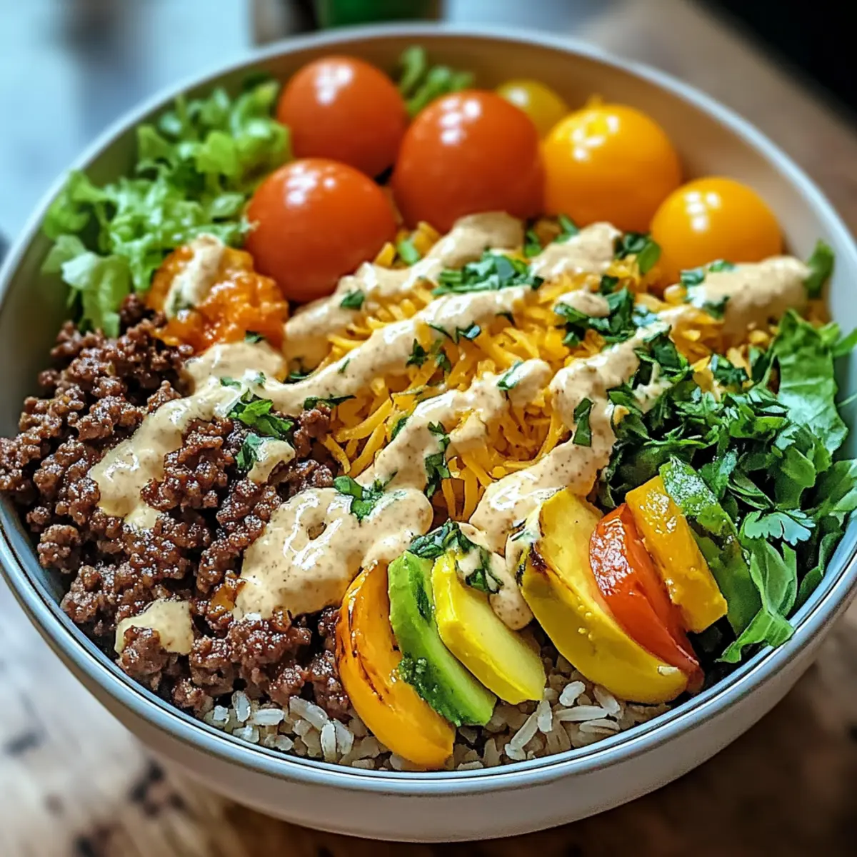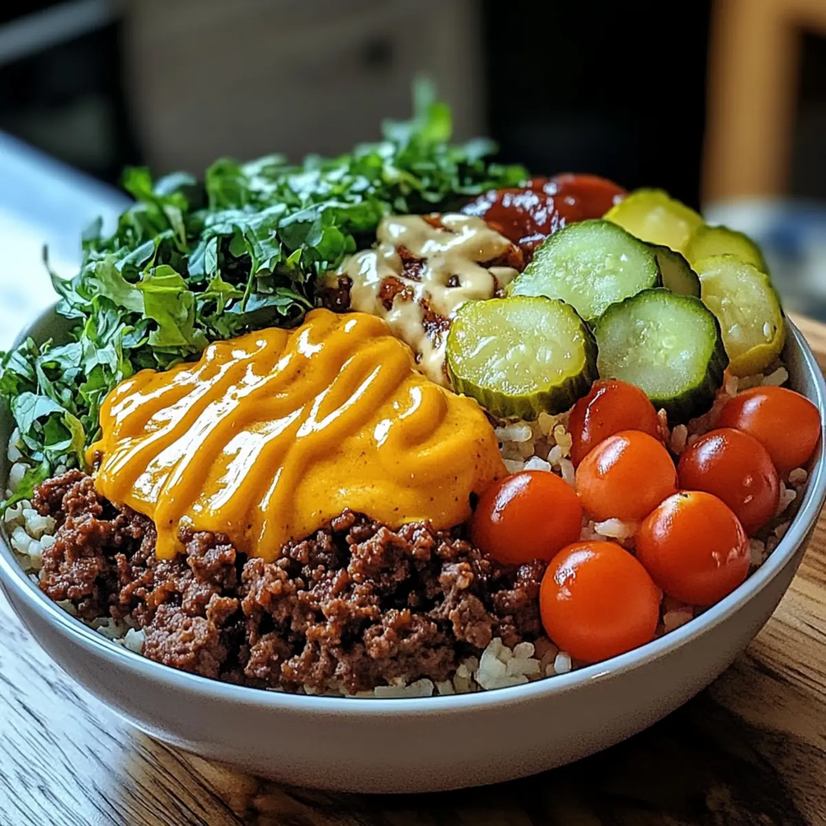 Proteinreiche Cheeseburger-Schüssel Rezept für Genießer