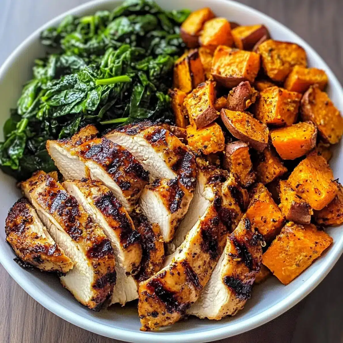 Gegrillte Hähnchen- und Süßkartoffelschüssel für jeden Abend