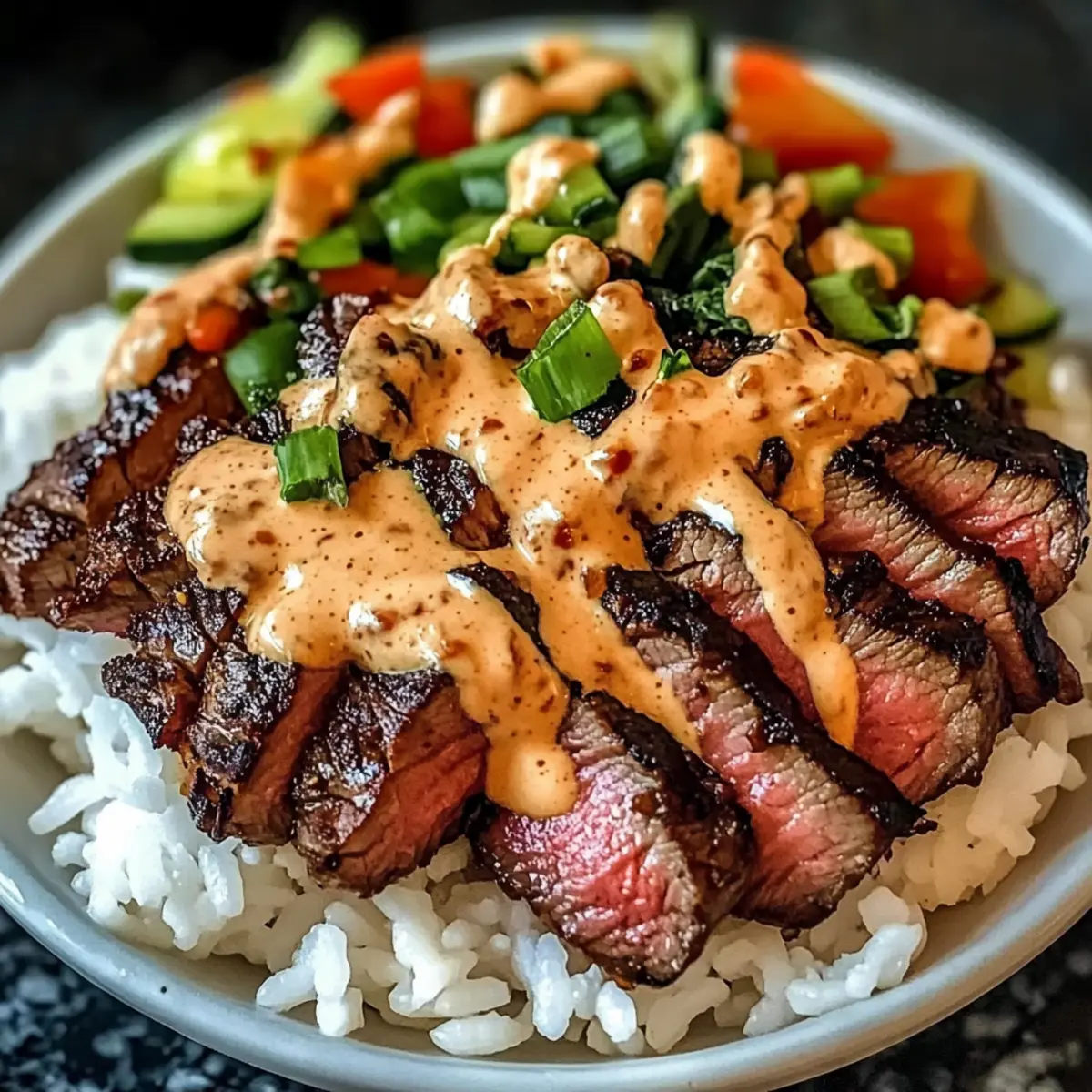 Koreanisches BBQ Steak Reis Schalen mit Sahnesauce