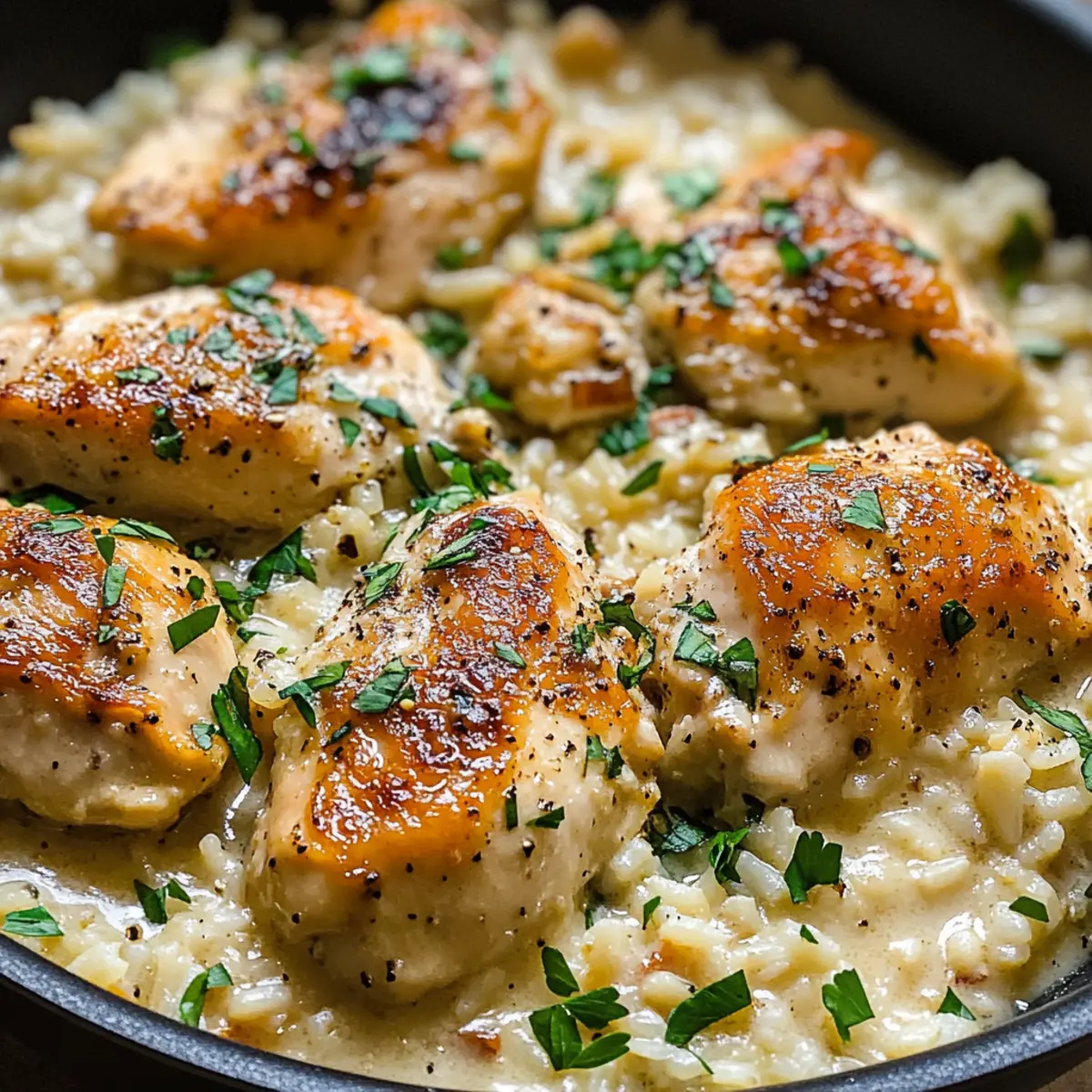Ein Pfannen Cremige Parmesan Hühnchen und Reis Rezept