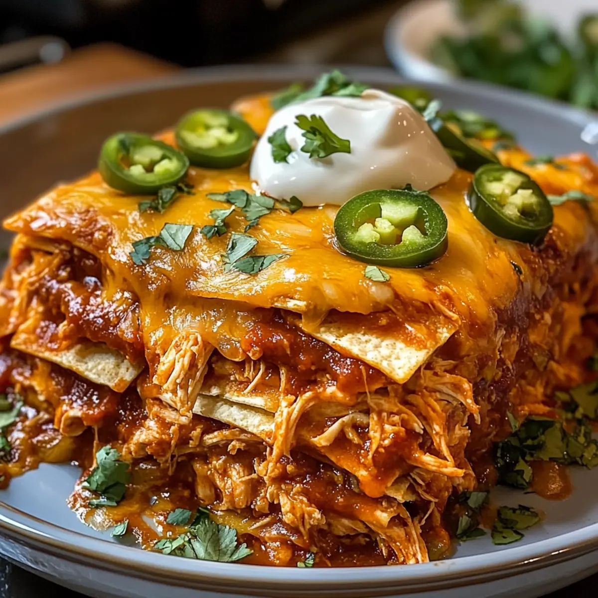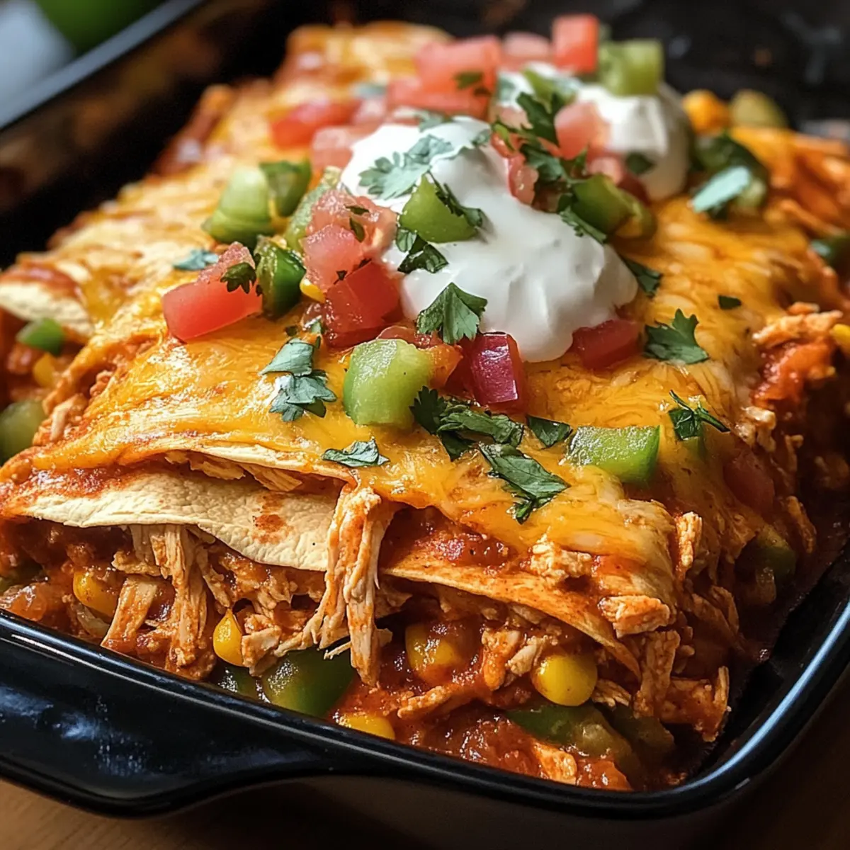 Zerrupftes Hühnchen Enchilada Auflauf für Wohlfühlmomente