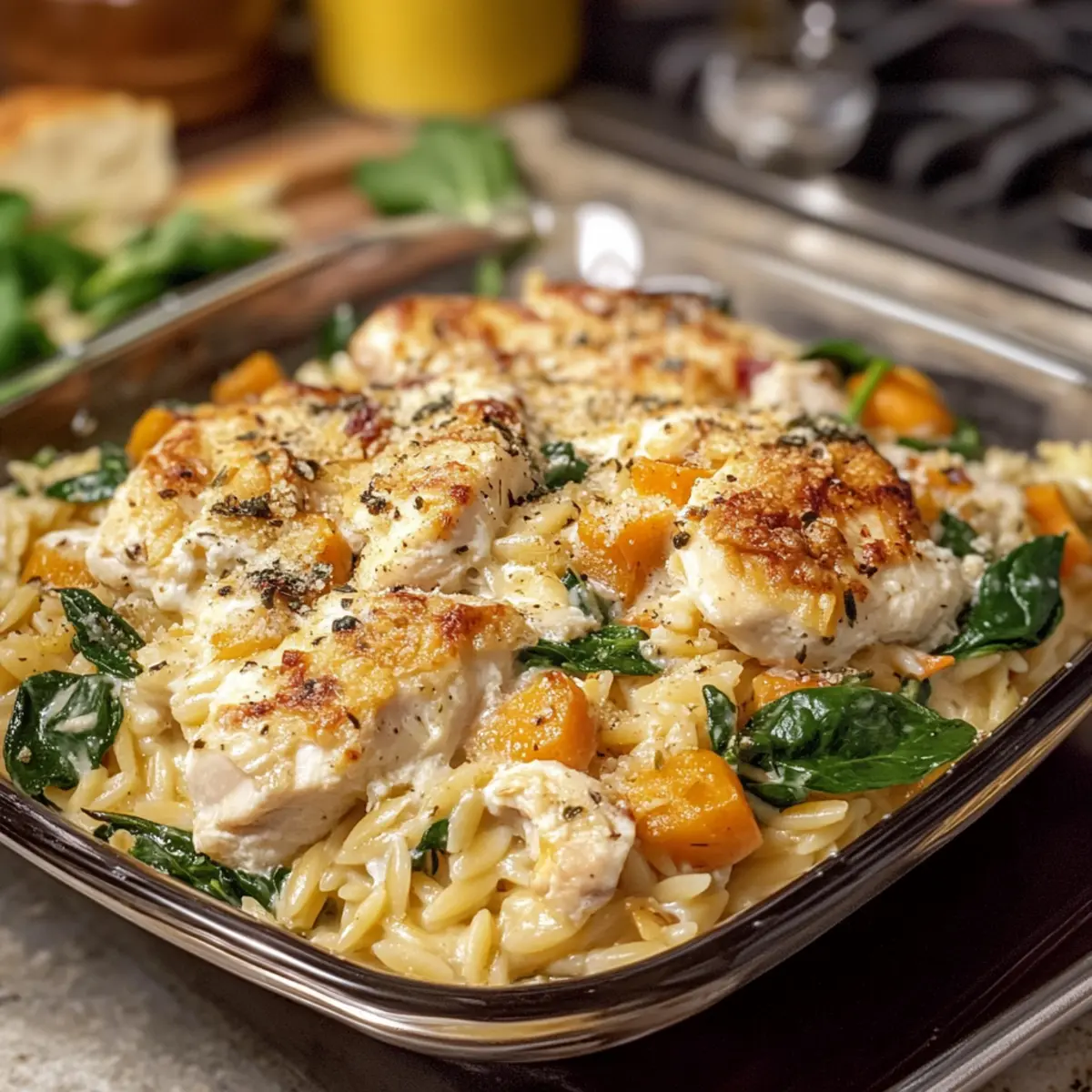 Boursin Orzo Auflauf mit Hühnchen und Gemüse zaubern