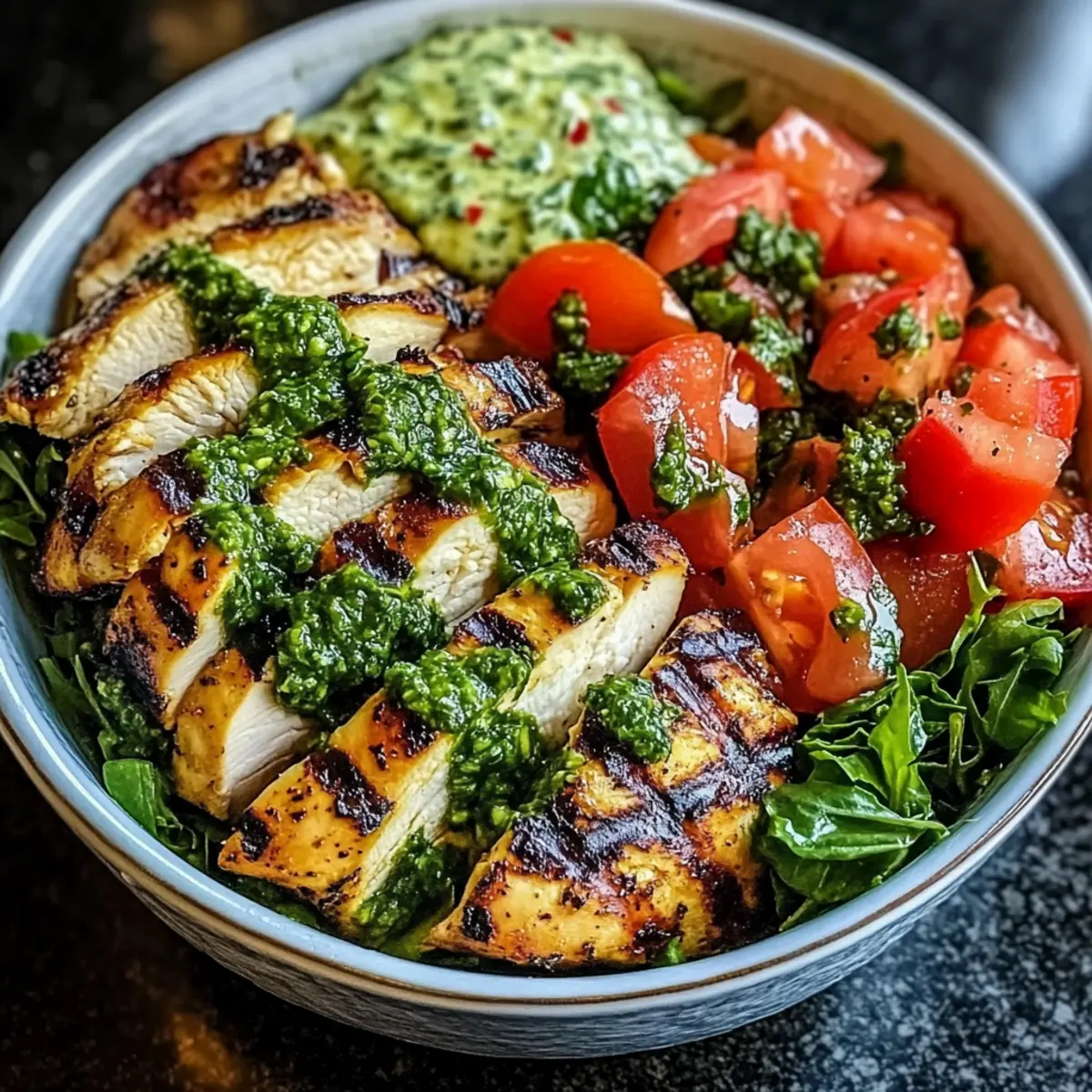 Chimichurri Gegrillte Hähnchen Schüssel mit Knoblauchsauce