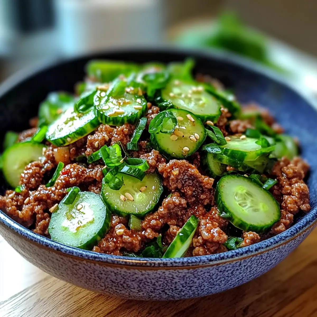 Würziges koreanisches Rinderhackfleisch mit frischem Gurkensalat