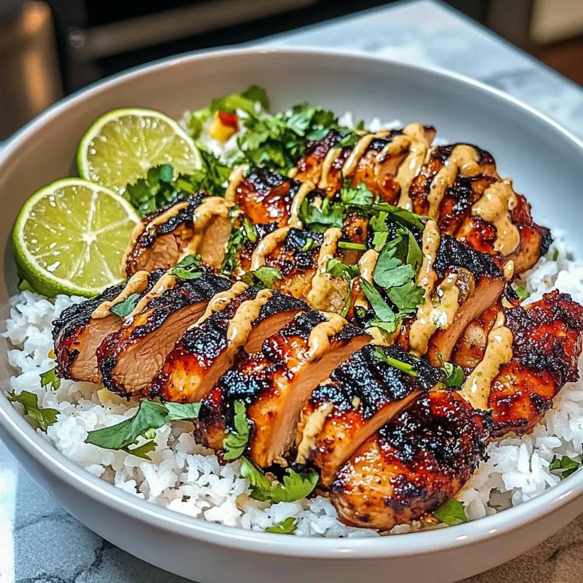 Süßer Chili-Hühnchen-Bowl mit Kokos-Limetten-Soße