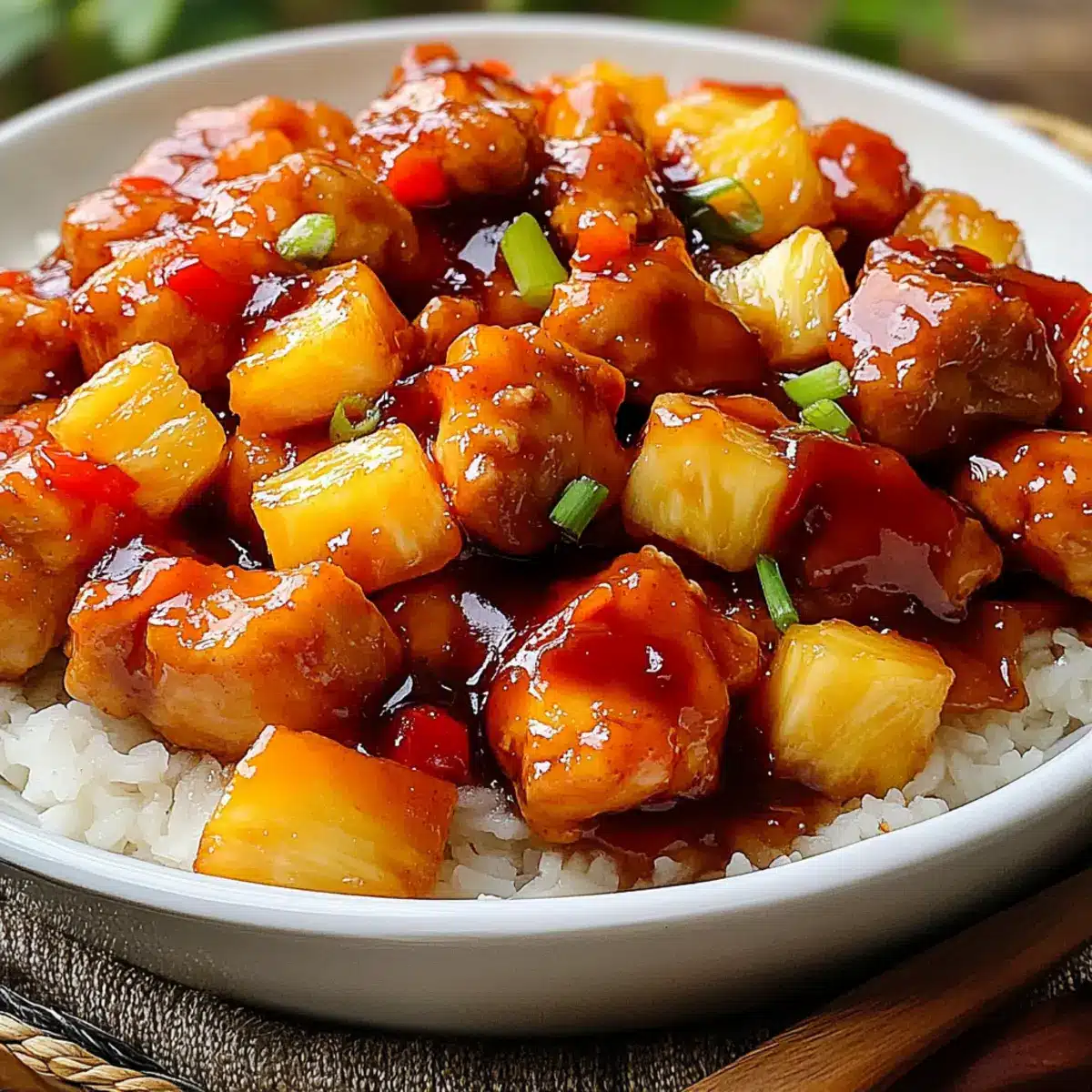 Gebratene süß-saure Hähnchen mit Ananas genießen