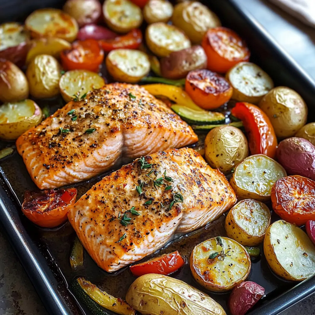 Blechpfanne Lachs und Kartoffeln schnell zubereiten