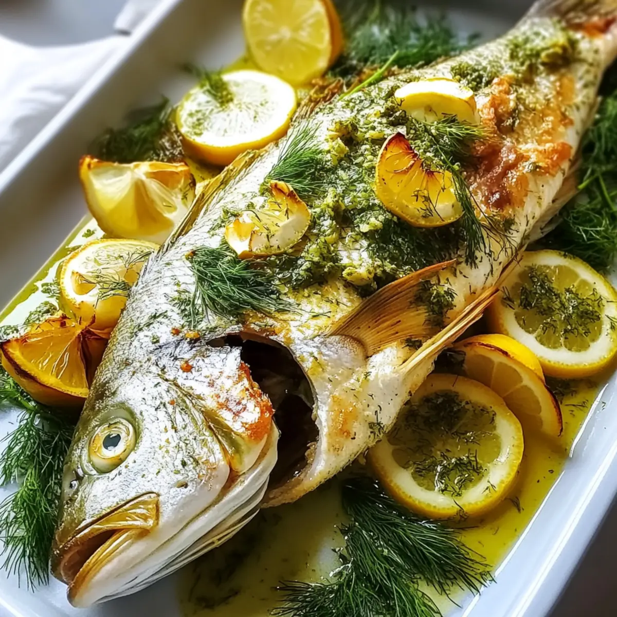 Ganz gebackener Fisch mit Knoblauch- und Dillbutter lecker gemacht