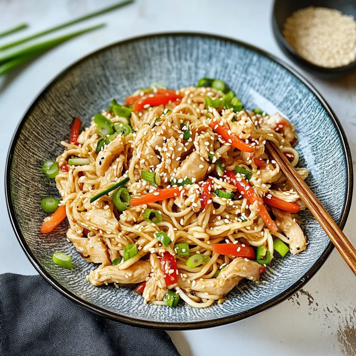 Asiatischer Nudelsalat mit gebratenen Hähnchenstreifen