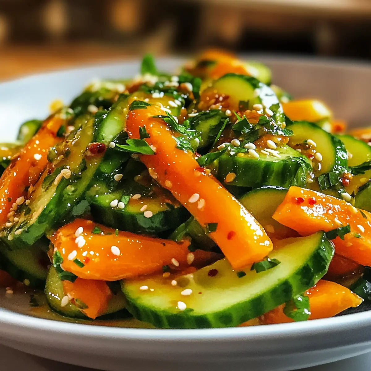 Gurken-Möhren-Salat mit würziger Gochugaru-Soße