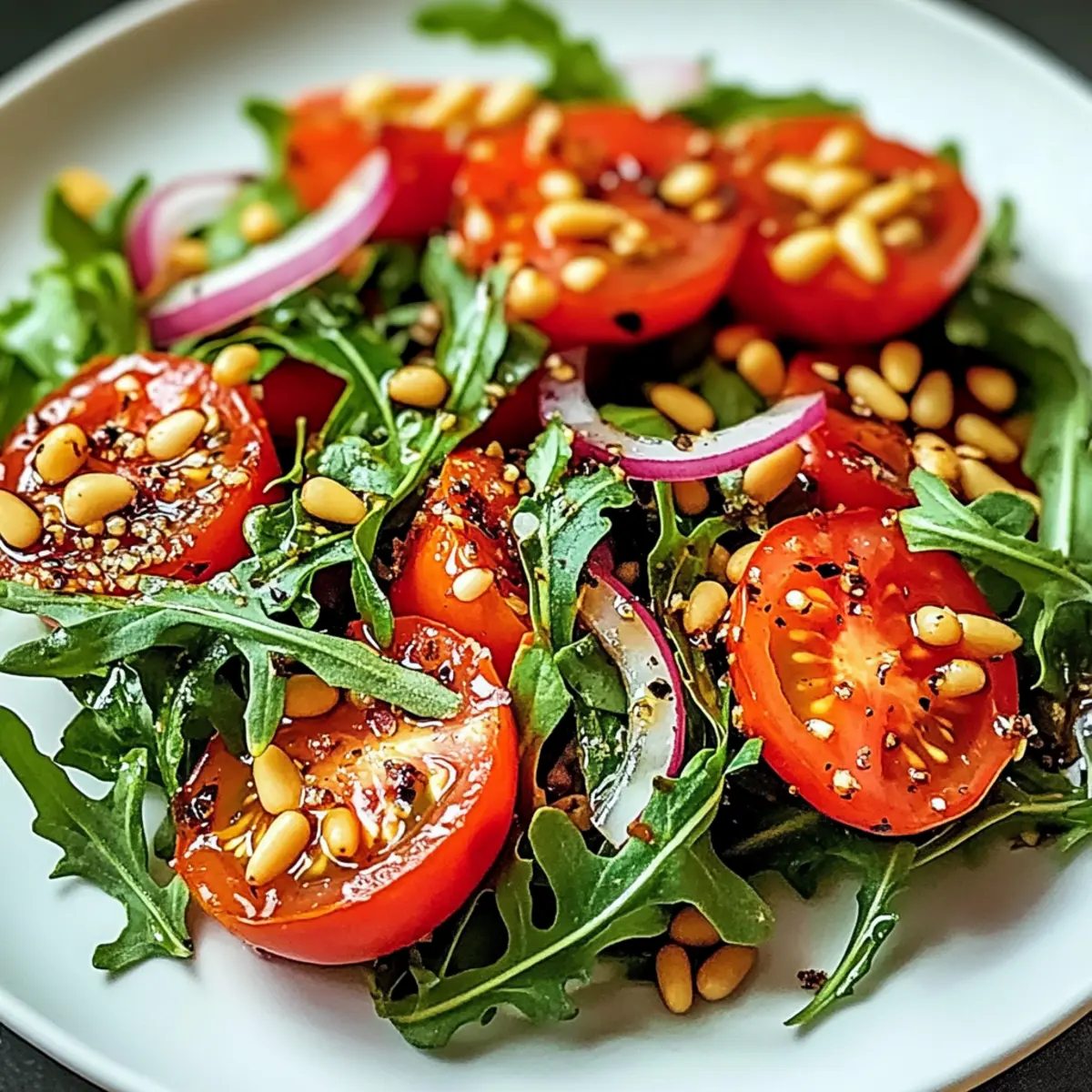 Erfrischender Tomaten-Rucola-Salat mit Pinienkernen
