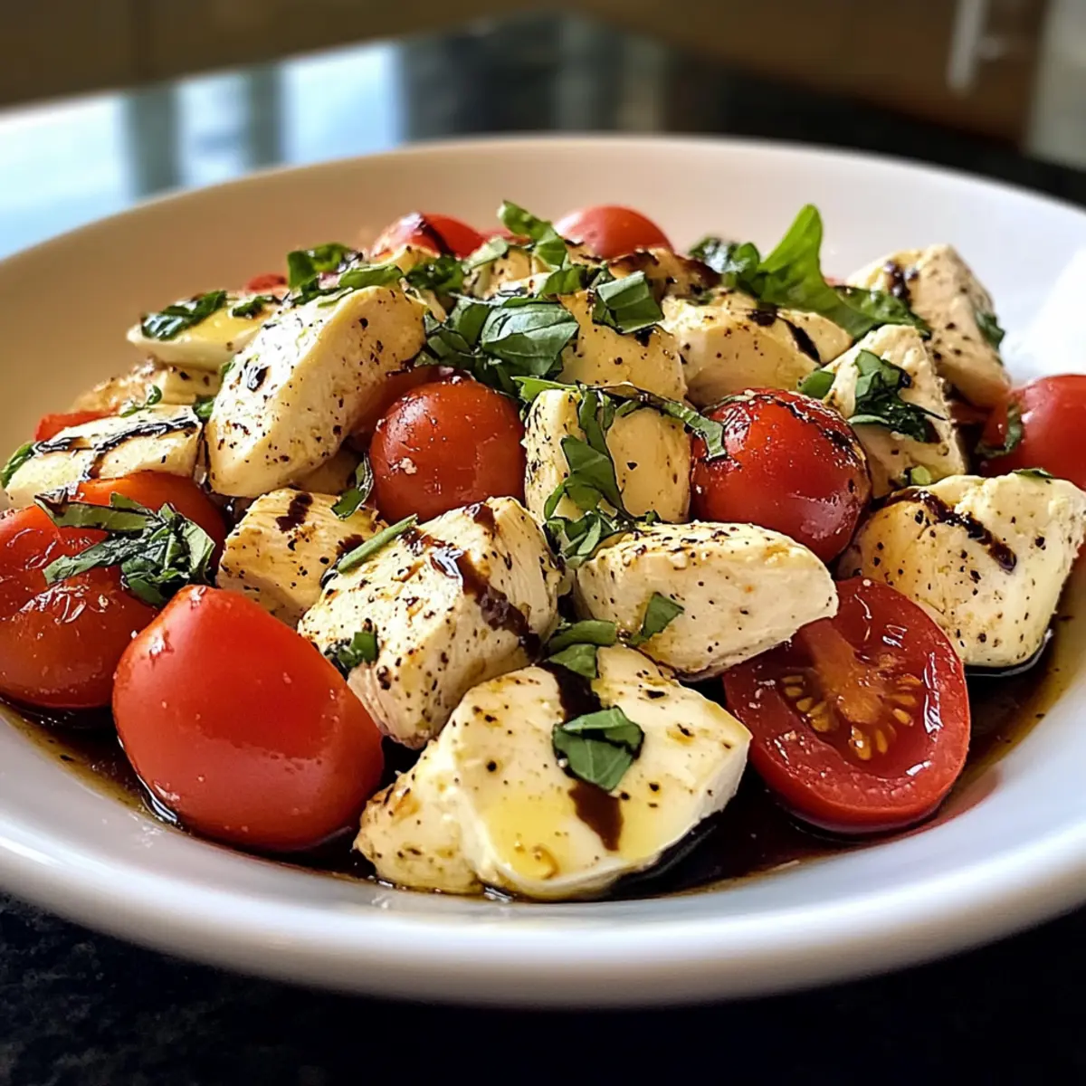 Niedrigcarb Caprese Hähnchensalat für schnelle Freude