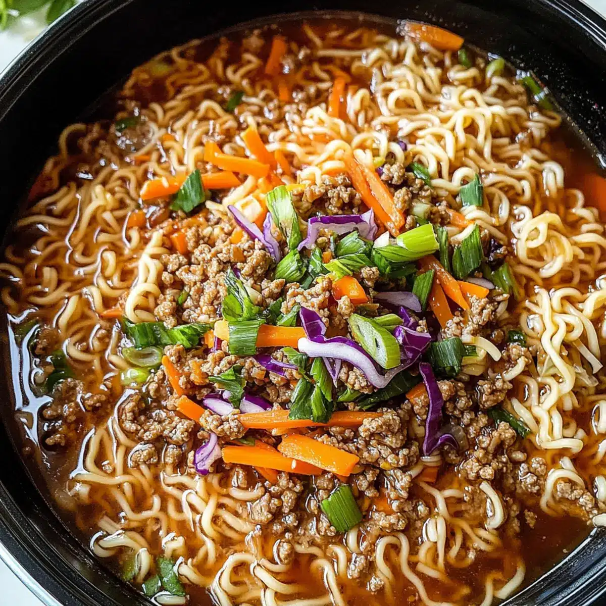 Langsame Kochmaschine Ramen Nudeln mit Rinderhack