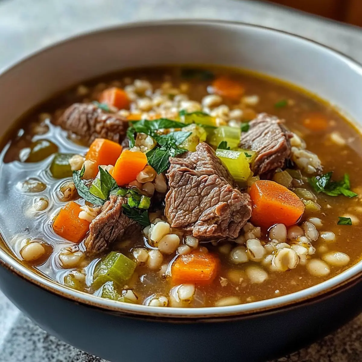 Crockpot Rindfleisch Gersten Suppe für Gemütlichkeit