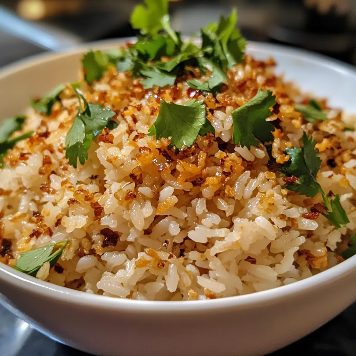 Schalte die Hitze aus, forme den Reis in einer Schüssel zu einem Kuppel und garniere ihn optional mit frischem Koriander. Dieser Schritt verleiht dem Chili Öl Sinangag einen frischen, aromatischen Touch. Serviere den Reis warm und genieße die köstlichen Aromen deiner eigenen Kreation!