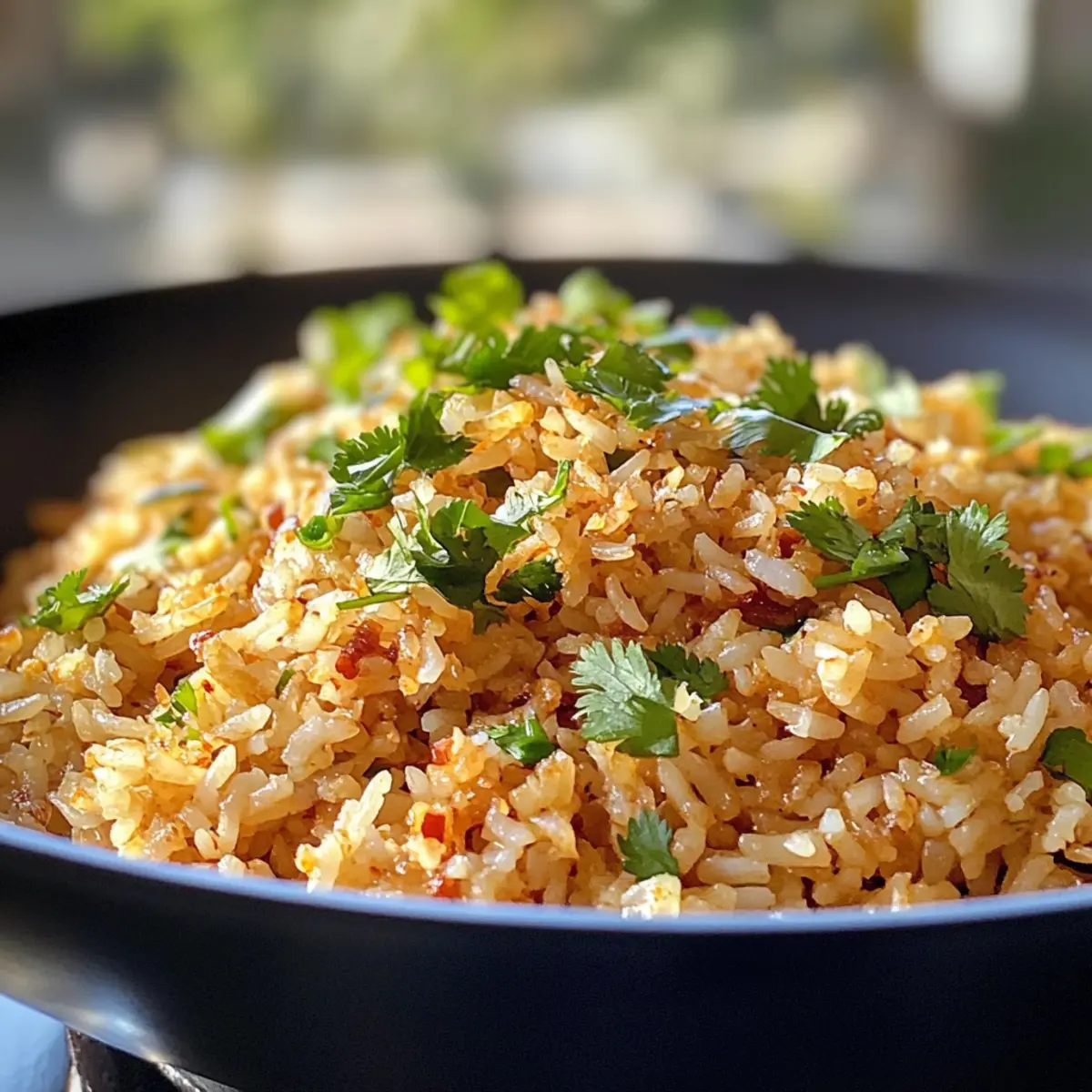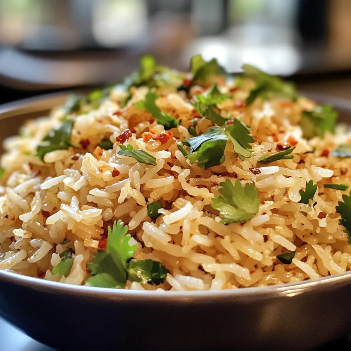 - Abschmecken und anrichten: Schalte die Hitze aus, forme den Reis in einer Schüssel und garniere ihn optional mit frischem Koriander.