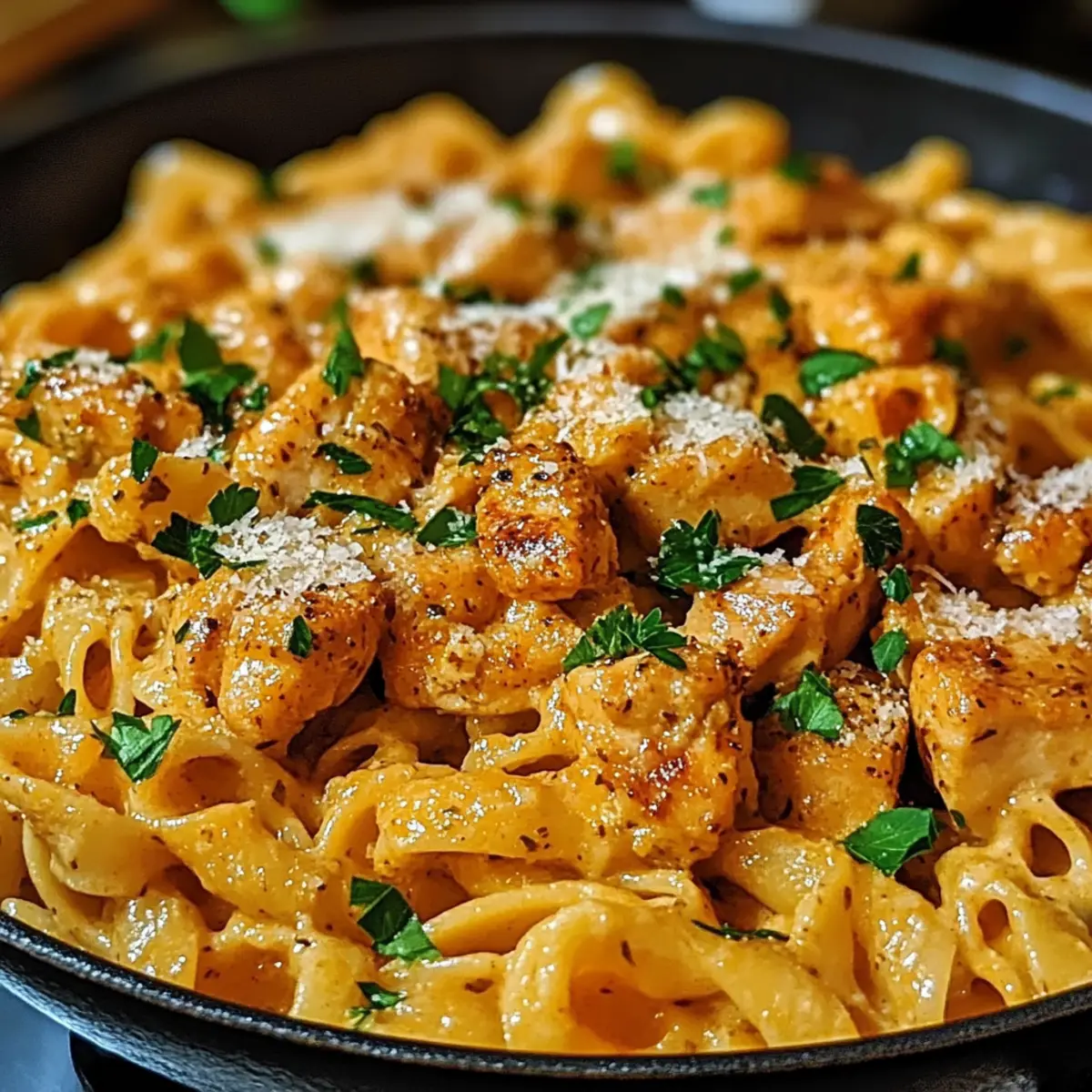 Absolut! Für eine vegane Variante kannst du die Hähnchenbrust durch pflanzliches Hähnchen und die Sahne durch Kokosmilch ersetzen. Wenn du glutenfrei leben möchtest, einfach glutenfreie Pasta verwenden. Experimentiere mit verschiedenen Kräutermischungen, um das Gericht nach deinem Geschmack anzupassen.