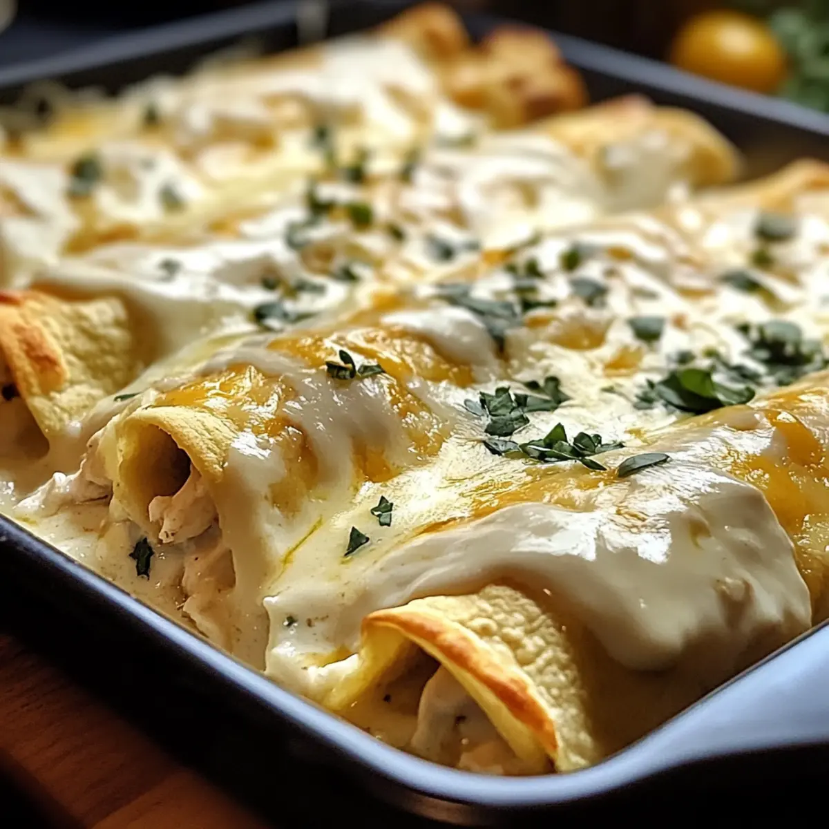 Cremige weiße Hühnchen-Enchiladas für Gemütliche Abende