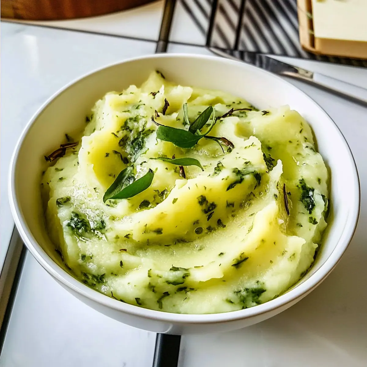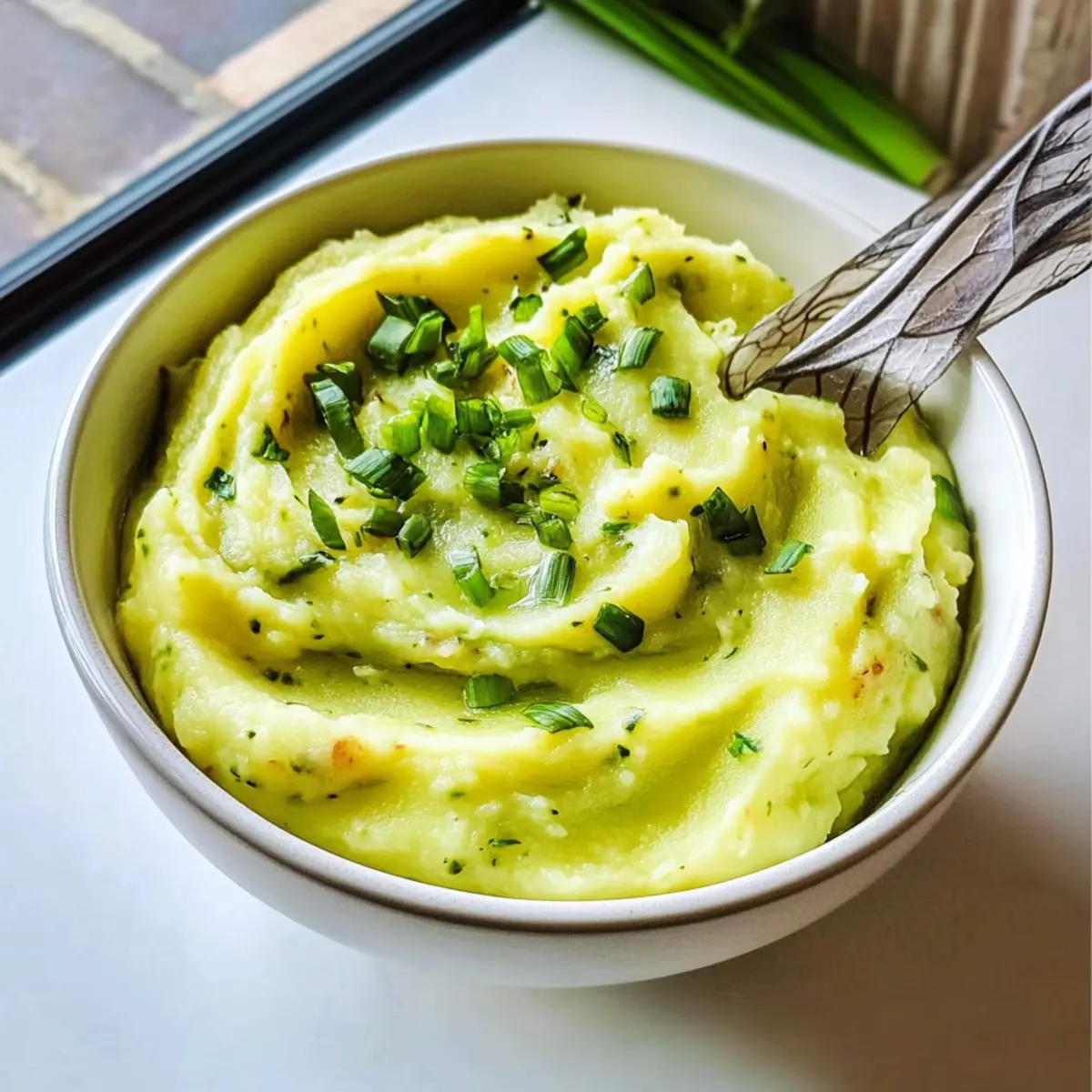 Cremiges Kartoffel- und wilder Knoblauchpüree genießen