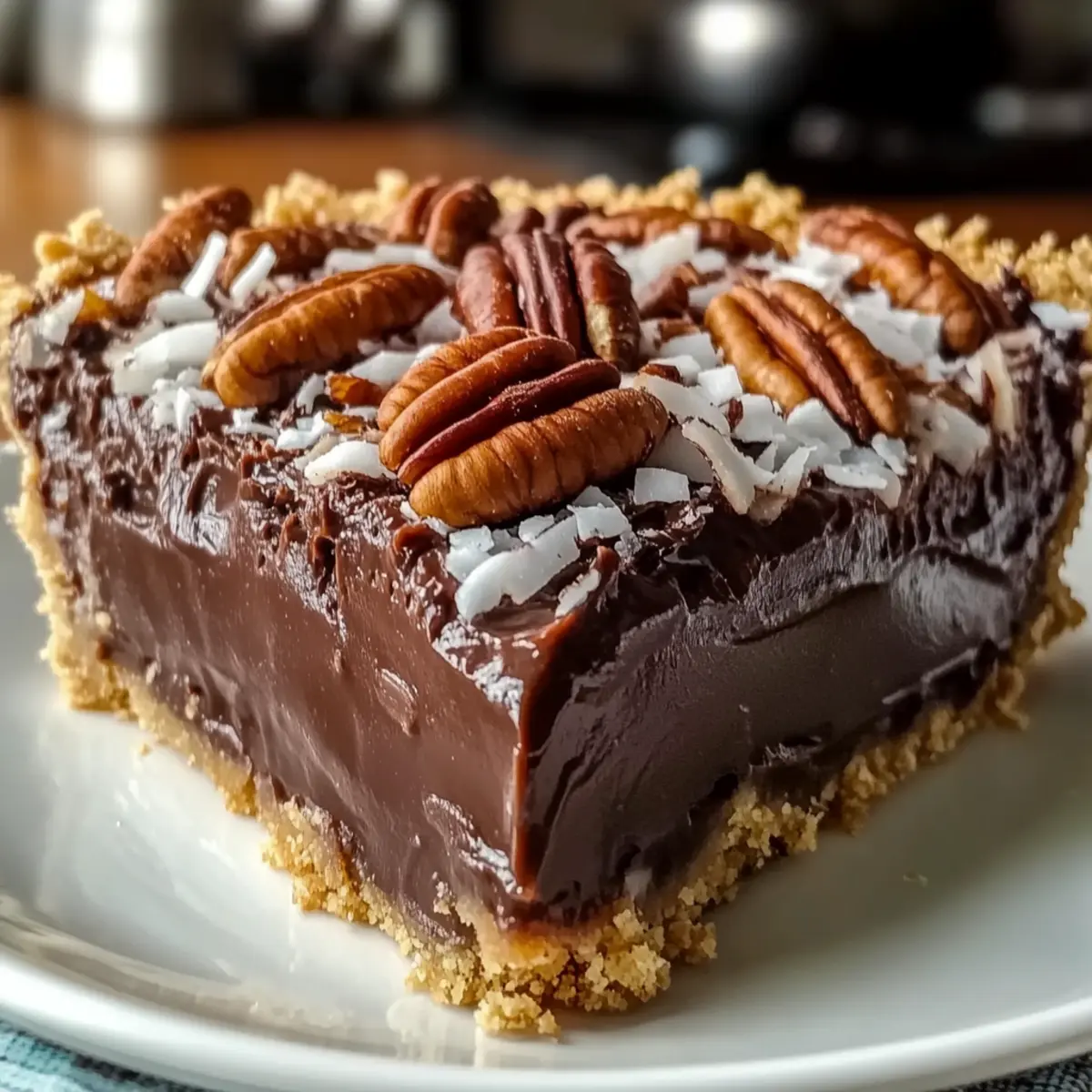 Sich in einen überbackenen Traum von Schokolade und Kokos zu stürzen, ist ein Genuss, den man sich nicht entgehen lassen sollte. Der Easy No-Bake German Chocolate Pie ist die perfekte Lösung, wenn der Heißhunger auf etwas Süßes kommt, ohne den Ofen zu bemühen. Mit einer samtigen Schokoladenganache, süßem, geröstetem Kokos und knackigen Pekannüssen in einem buttrigen Keksboden ist dieses Dessert ein absoluter Publikumsliebling. Besonders vorteilhaft ist die schnelle Zubereitung, wodurch du mehr Zeit mit deinen Lieben verbringen kannst, während ihr gemeinsam genießt. Egal, ob zu einem Sommerfest oder einem besonderen Abendessen, dieser glutenfreie und auch leicht milchfreie Schokoladenkuchen wird alle begeistern. Welche Geschmäcker werden deine Gäste überraschen, wenn du diesen himmlischen Leckerbissen servierst?