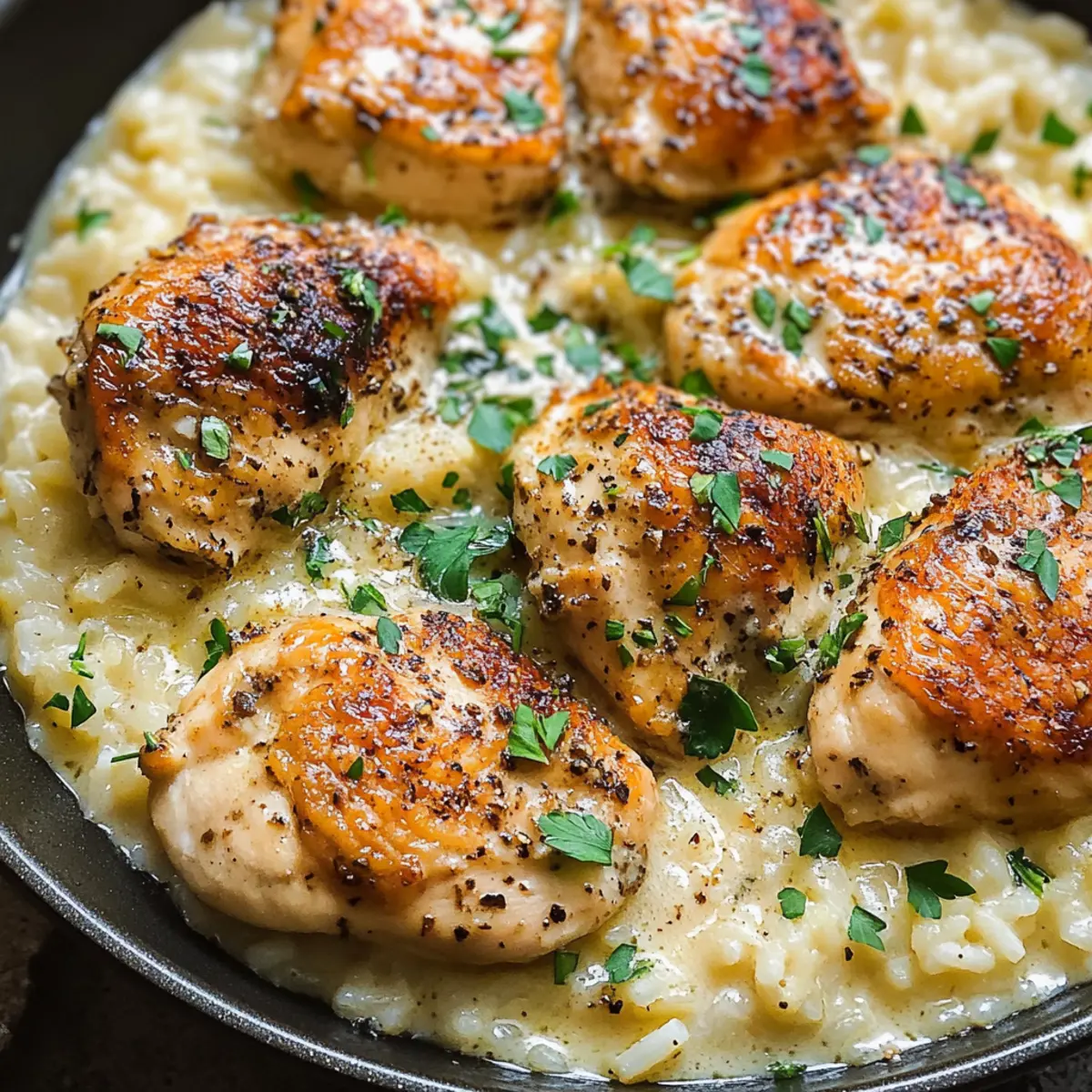 Ein Pfannen Cremige Parmesan Hühnchen und Reis Rezept