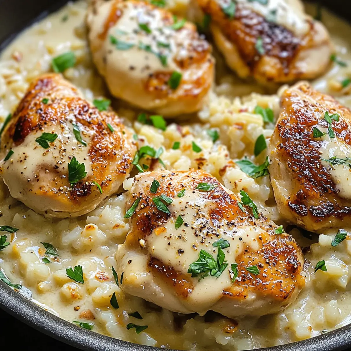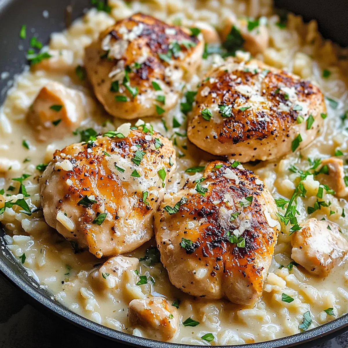 Schritt-für-Schritt-Anleitung für Ein-Pfannen-Cremige-Parmesan-Hühnchen-und-Reis
