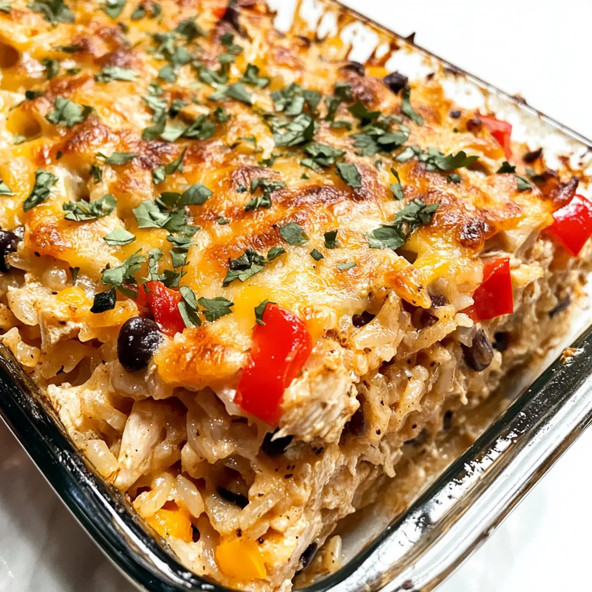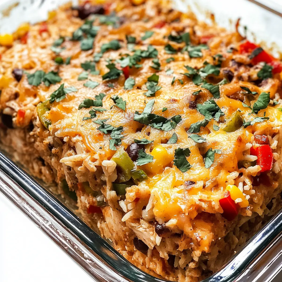Nehme die Aluminiumfolie vorsichtig ab und bestreue den Auflauf gleichmäßig mit zerkäseltem Monterey Jack-Käse. Setze die Auflaufform für zusätzliche 5 bis 10 Minuten zurück in den Ofen, bis der Käse geschmolzen und schön goldbraun ist. So erhältst du die perfekte, cremige Käsekruste auf deinem Einfachen Hühnchen-Burrito-Auflauf.