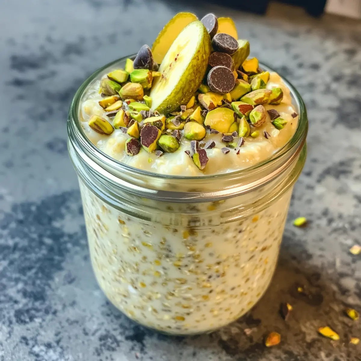 Obstzauber: Du kannst die Bananenscheiben durch Mangostücke oder Ananas ersetzen, um eine fruchtige Frische hinzuzufügen. Die Süße der Früchte passt hervorragend zur Pistazie und sorgt für Vielfalt im Genuss.