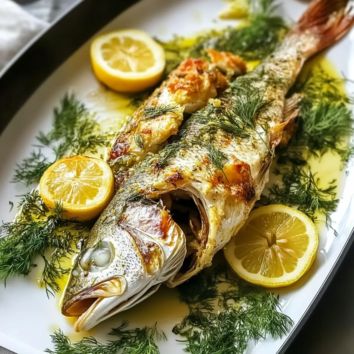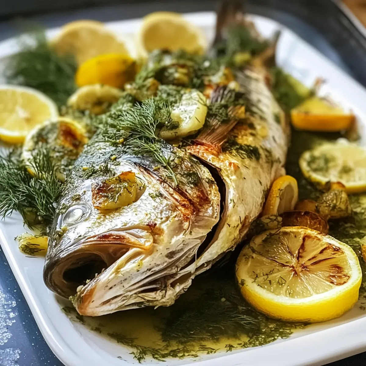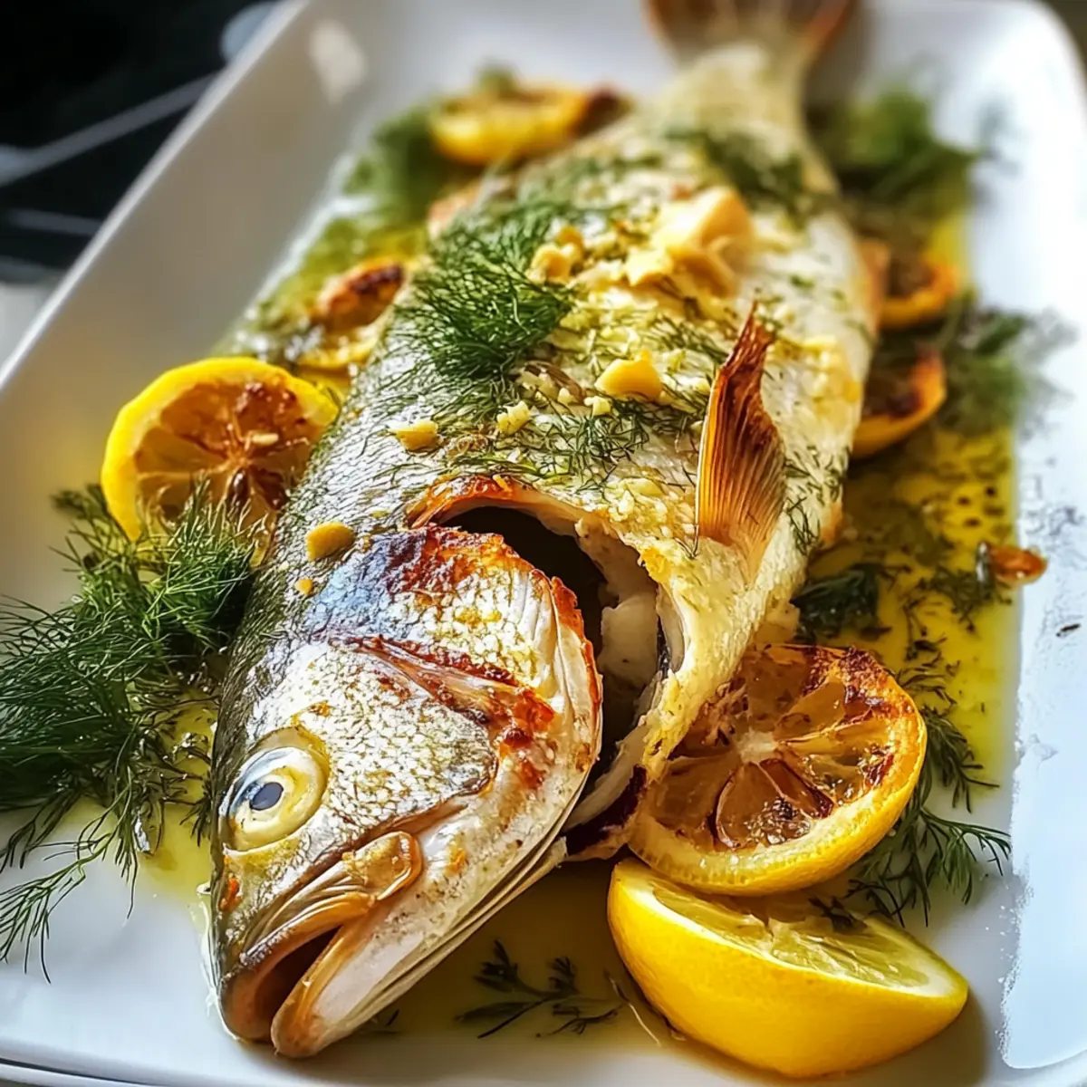 Ganz gebackener Fisch mit Knoblauch- und Dillbutter lecker gemacht