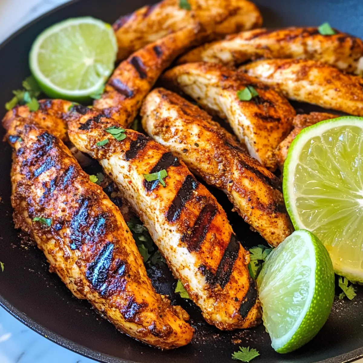 Sobald die Gewürzten Hähnchenstreifen goldbraun und knusprig sind, diese vom Feuer nehmen und mit frischem Limettensaft beträufeln. Dies gibt nicht nur eine zusätzliche Frische, sondern hebt auch die Aromen der Marinade hervor. Genießen!