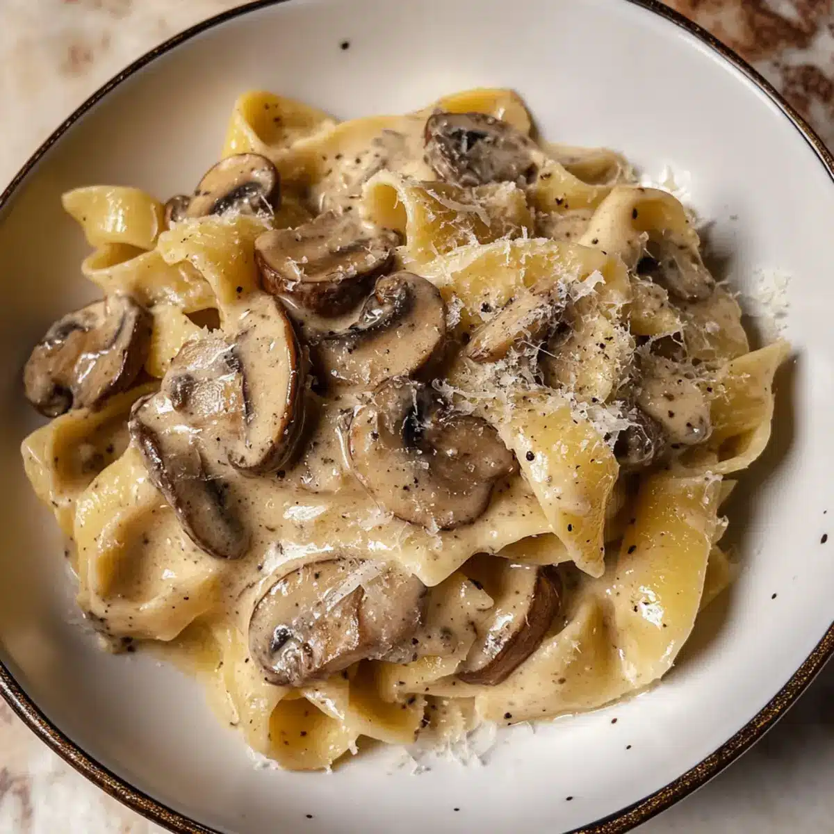 Mache deine Pasta zum Genuss mit dieser Gorgonzola-Trüffelcremesauce mit Pilzen!