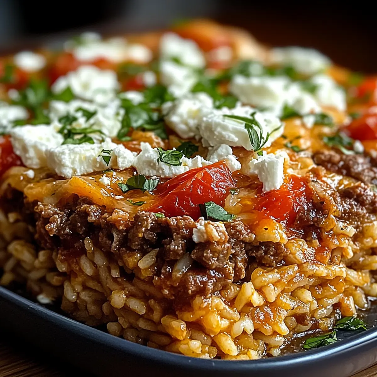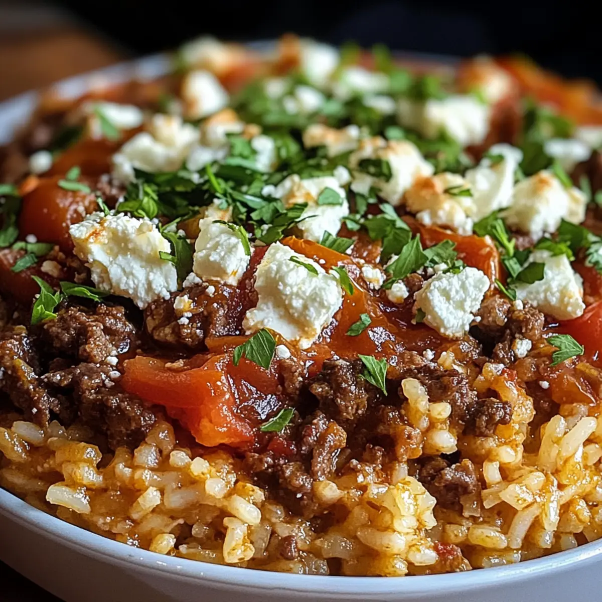 Herzhafter Geschmack: Die Kombination von würzigem Rinderhackfleisch, sonnengereiften Tomaten und cremigem Feta sorgt für ein unwiderstehliches Geschmackserlebnis.