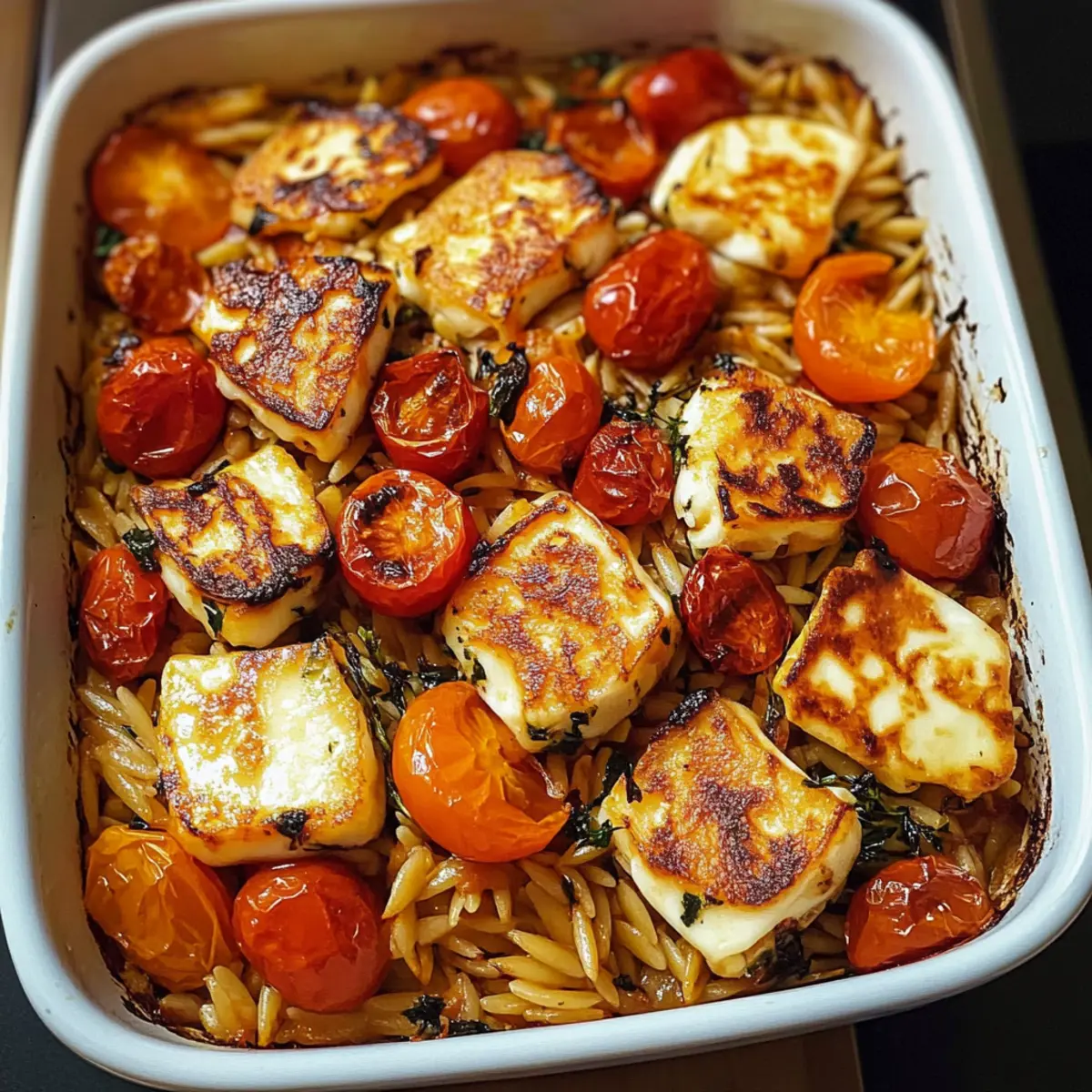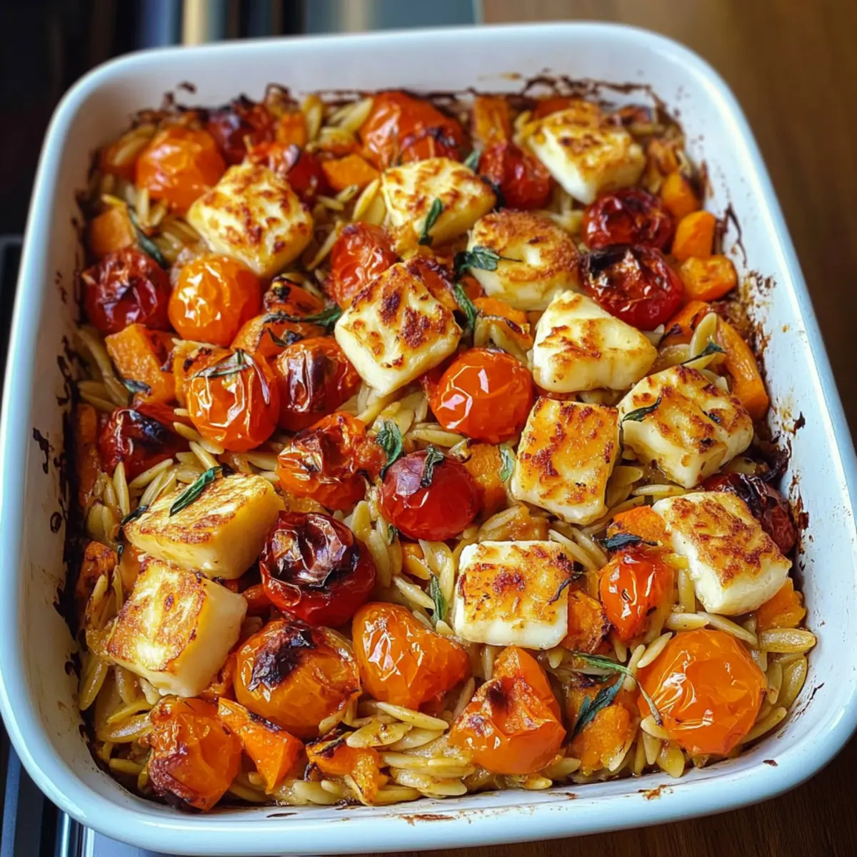Herbstlicher Halloumi-Orzo-Auflauf für die ganze Familie