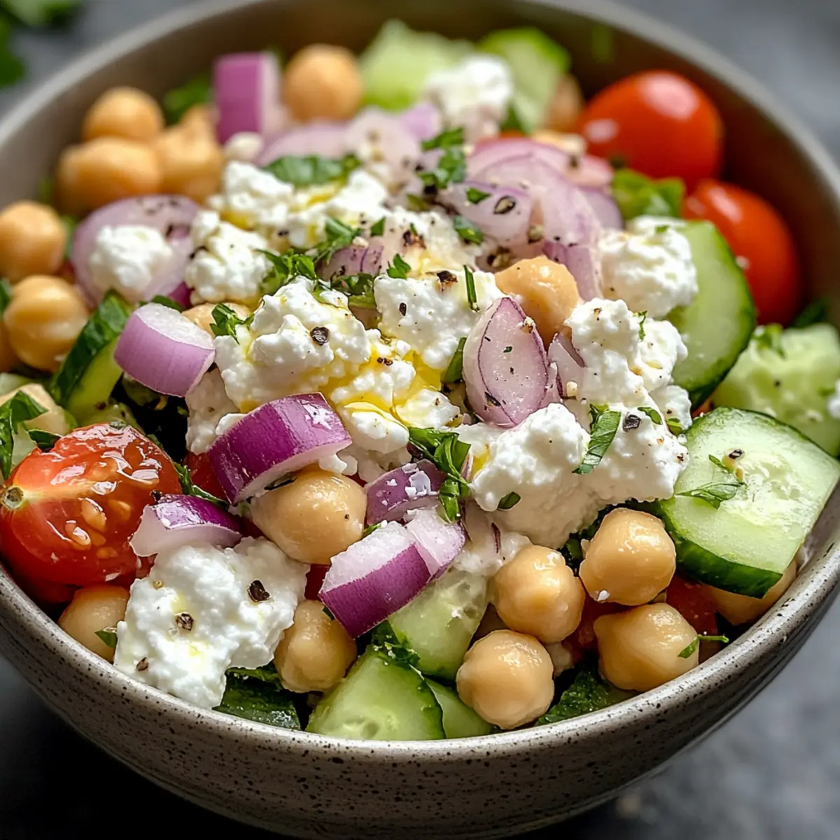 Hüttenkäse Kichererbsen Salat – Gesund und schnell genießen