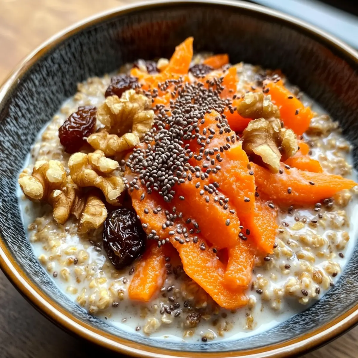 Die Karottenkuchen Chia Hafer können kühl oder leicht erwärmt genossen werden. Serviere sie in Schalen, garniert mit extra geriebenen Karotten, gehackten Nüssen oder einem Schuss Ahornsirup für zusätzlichen Geschmack. Diese köstliche Kombination wird dir helfen, kraftvoll in den Tag zu starten.