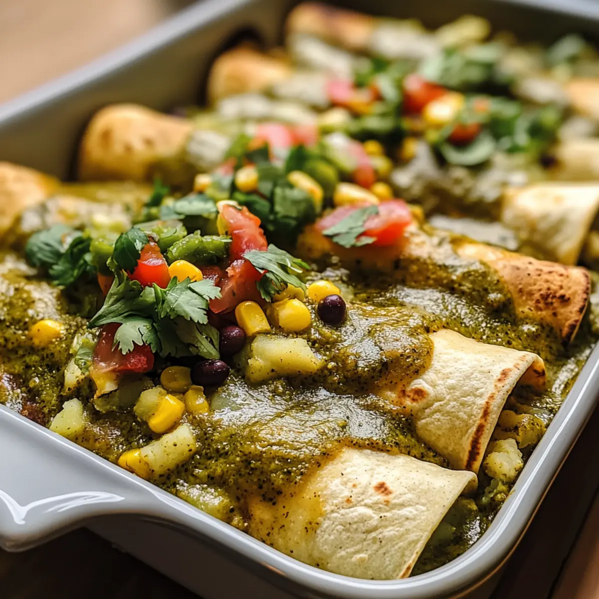 Es war ein colder Abend, als ich mir etwas Warmes und Tröstliches wünschte, und plötzlich fiel mir ein Rezept für Kartoffelgrün-Chili-Enchiladas ein. Diese köstlichen Enchiladas vereinen zarte, cremige Kartoffeln mit einer spritzigen grünen Chili-Sauce, alles eingehüllt in weiche Tortillas. Und das Beste daran? Die Zubereitung ist im Handumdrehen erledigt! Perfekt für gemütliche Abende zu Hause oder als herzhaftes Gericht für Gäste. Das Wunderbare an diesem Rezept ist nicht nur die Schnelligkeit, sondern auch die Möglichkeit, mit frischem Gemüse zu variieren und so gesund zu genießen. Wer kann bei einem solch liebevollen, pflanzlichen Gericht widerstehen? Bist du bereit, in die Welt der Kartoffelgrün-Chili-Enchiladas einzutauchen und etwas Köstliches zu zaubern?